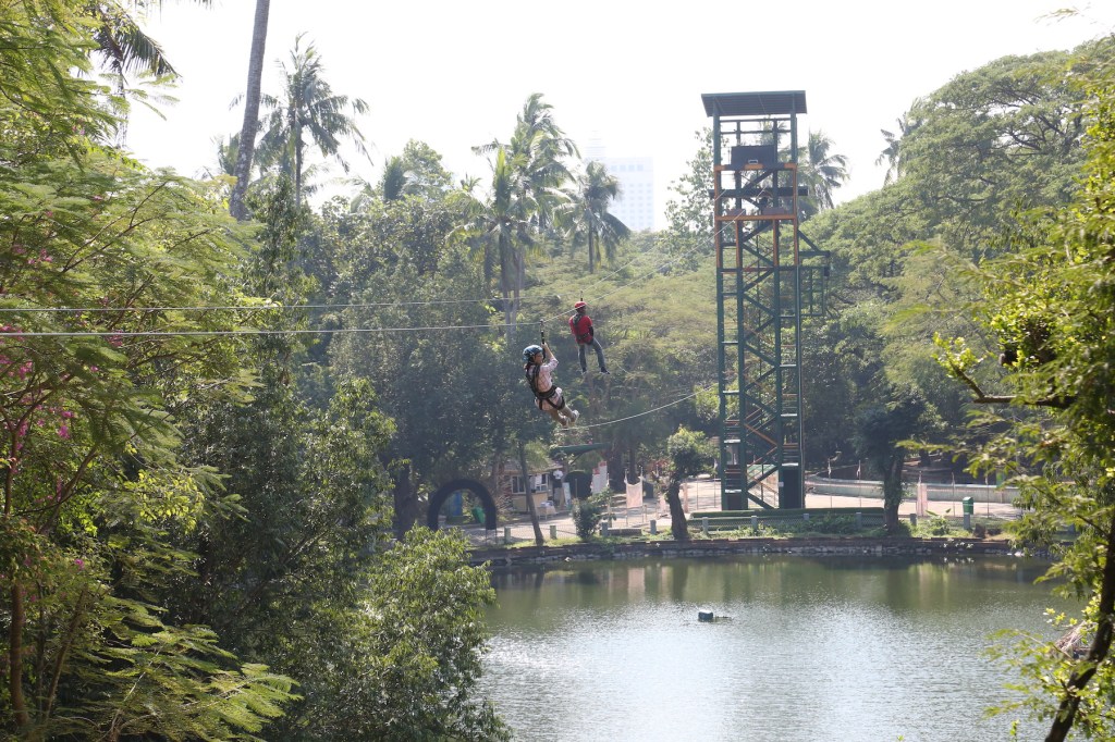 တိရိစ္ဆာန်ဥယျာဉ်မှာ နောက်ဆုံးပေါ်ခေတ်စားနေတာကတော့ Zip-Line ပေါ့။ ထူးကုမ္ပဏီက အသစ် တည်ဆောက်ထားတာဆိုလို့ Zip-Line နဲ့ စားသောက်ဆိုင်တန်းနှစ်ခုပဲတွေ့မိတယ်။ ။ Zip-Line ရဲ့တိုင်တစ်တိုင်က ကိုလိုနီခေတ် လက်ရာ အဆောက်အဦရှိတဲ့ကုန်းပေါ်မှာထောင်ထားတယ်။ အဲဒီ နေရာက Zip-Line စ ထွက်တဲ့ နေရာလည်းဖြစ်တယ်။ ဟိုတုန်းကေ တာ့ ဒီကုန်းလေးပေါ်မှာ နားနေလို့၊ အပန်းဖြေလို့ကောင်းတယ်။ အခုတော့ အဲဒီ အဆောက်အဦလေးကလည်း လက်မှတ် ရောင်းတဲ့နေရာဖြစ်၊ နောက်မှာလည်း သံမဏိ မေ ျှာ်စင်ကြီးနဲ့အလှပျက်နေပေါ့။ နောက်ပြီး ရေ ပျော်ငှက်တွေထားတဲ့ ကန်ကို ဖြတ်ပြီး Zip-Line လုပ်သင့်လားဆိုတာလည်း စဉ်းစားစရာပဲ။