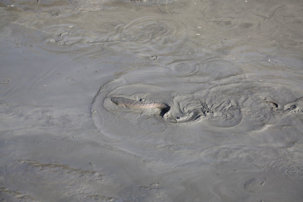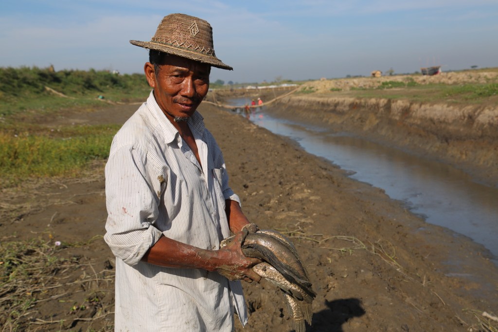 ပိတ်ထားတဲ့အင်းချောင်းထဲမှတော့ ရေစပ်စပ်ပဲရှိတော့တယ်။ မနေ့က ပိုက်ဆွဲထားတာတောင် ငါး အတော်ကျန်နေသေးတယ်။ ရေစပ်စပ်ထဲမှာ ရုန်းကန်နေတဲ့ငါးတွေကို မြင်ရတာ “အမိမဲ့သား ရေနဲ ငါး” ဆိုတဲ့ စကားကို ကောင်းကောင်းနားလည်သွားတယ်။ တစ်ချို့ငါးတွေက ရေစုတ်စက်က ပြန် ကျလာတဲ့ရေစီးကြောင်းအတိုင်းအတင်းတိုးတက်နေကြတယ်။ အပေါ်မှာ ရေကန်ရှိမယ်ဆိုတဲ့ ယုံ ကြည်ချက်နဲ့ပေါ့။ ဒါပေမယ့် ယင်းထိပ်မြောင်းထဲမှာ ပိတ်မိနေပြီး ခြင်းထဲကောက်ထည့်ခံလိုက်ရ တယ်။ တစ်ချို့ငါးတွေကတော့ ရွံ့စပ်စပ်ထဲမှာ လူးနေကြတယ်။ တစ်ချို့က လမ်းမှားပြီး နွံစပ်မှာ တင်နေတယ်။ ပြန်ဆင်းလို့မရတော့ဘူး။ တစ်ချို့ကတော့ ခေါင်းလေးပဲဖော်ပြီး ရွံ့ထဲမှာ ငြိမ်နေတယ်။ နွံအောက်ထဲ တိုး ဝင်နေတဲငါးတွေလည်းရှိတယ်။ ဒါပေမယ့် သူတို့လည်း ကြာကြာမနေနိုင်ဘူး။ ရေခန်းလာတဲ့အခါ မွန်းလာတဲ့အတွက်အပေါ် တက်လာရတာပဲ။