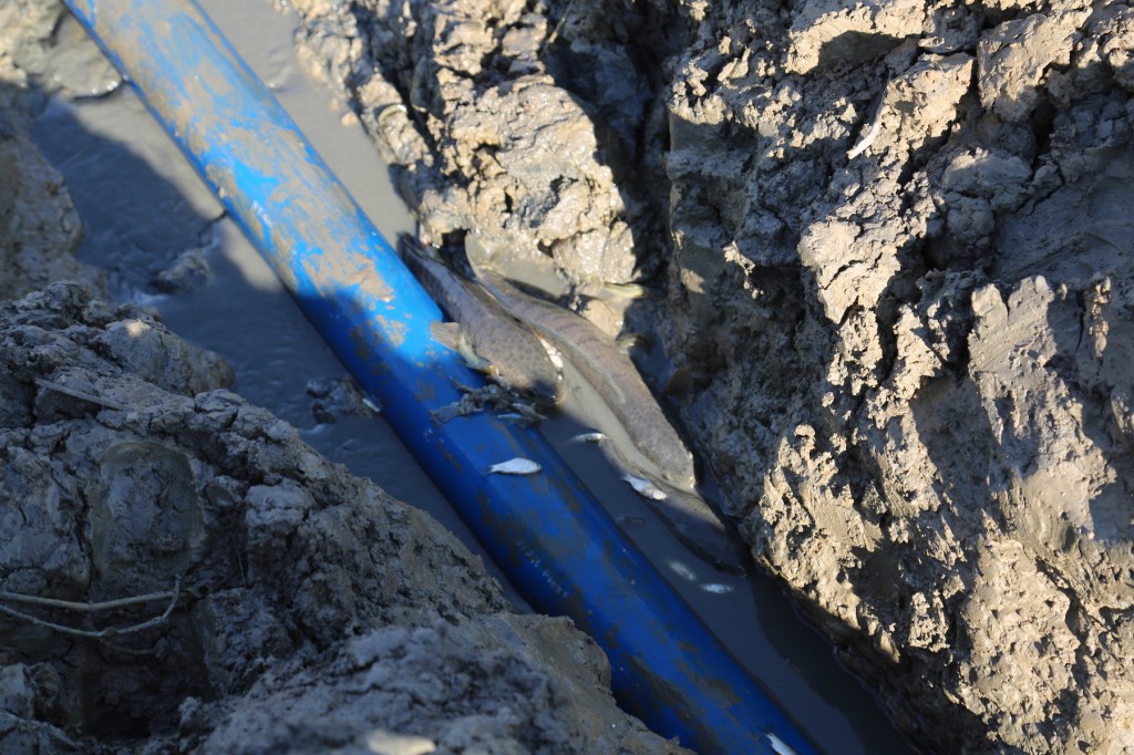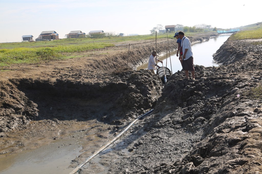 အင်းပက်တဲ့နေရာမှာ အင်းသားကြီးတို့က အပေါ်တမံကနေ ရေစိမ့်နေလို့ ထူးပေါက်ပိတ်နေကြ တယ်။ အောက်ဘက်ကတမံနေရာမှာတော့ ရေစုတ်စက်အသေးလေးနဲ့ ရေစုတ်ထုတ်နေတယ်။ ပိုက်အထွက်ဘက်မှာ ငါးတွေပါမသွားအောင် ခြင်းတစ်လုံးစွတ်ထားတယ်။ အဲဒီထဲမှာ ငါးသေး သေး လေးတွေတင်နေတယ်။