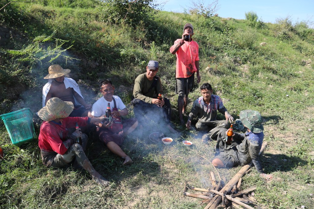 ၁၁ နာရီထိုးတော့ အင်းသားကြီးက ရေစုတ်စက်ကို ခဏရပ်လိုက်တယ်။ ငါးကောက်တာကို နား လိုက်တယ်။ ဇာတ်တိုက်ထားသလိုပဲ တဲဘက်က လှေနဲ့ ဘီယာတွေရောက်လာတယ်။ အင်းချောင်းထဲက လူတွေ ကုန်းပေါ်ရောက်လာပြီ။ တာဘောင်ဘေး အရိပ်လေးနည်းနည်း ရှိတဲ့ နေရာမှာ စုကြပြီ။