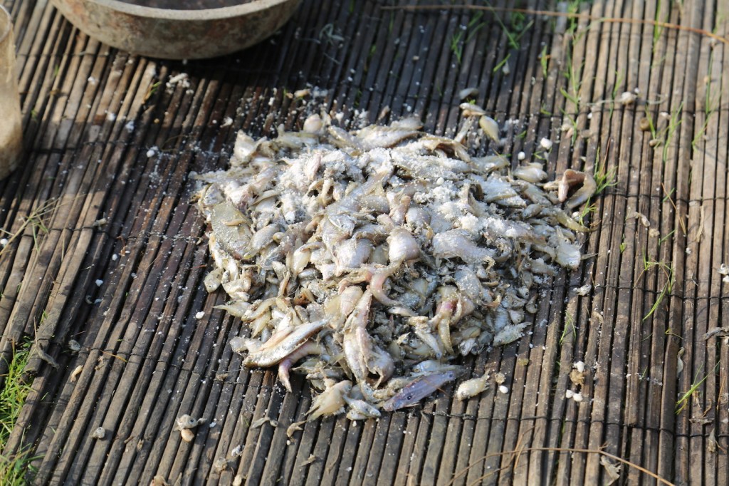 အလုံးခွဲပြီးရင်တော့ အိုးထဲထည့်၊ ဝါးကပ်နဲ့ဖိပြီး သိပ်ထားလိုက်တယ်။ ငါးလလောက် သိပ်ထား မှ နပ်ပြီး ရေကျိုငါးပိကောင်းကောင်းဖြစ်တယ်။ အဲဒီလို ငါးပိသိပ်ထားတဲ့အချိန် အိုးပေါ်တက်လာတဲ့ အရည် ကြည်ကို အိုးတက်ငံပြာရည်လို့ခေါ်တယ်။ အခုသူတို့ စားနေတဲ့ ရေကျိုငါးပိတွေက မနှစ် က သိပ်ထား တဲ့ငါးပိတွေ။ အခုသိပ်နေတဲ့ ရေကျိုငါးပိတွေက နောက်နှစ်မိုးတွင်းမှစားလို့ရမှာပါ။