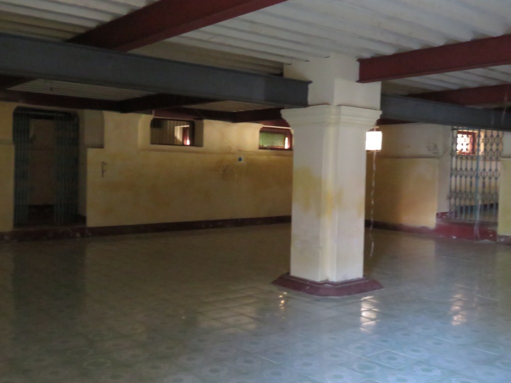 အောက်ဆုံးထပ်ကလည်း ဒီလိုပုံပဲ၊ အလယ်မှာ တိုင်လုံးကြီးနဲ့ ခန်းမတစ်ခုရှိတယ်။ ဘေးပတ်ဝန်း ကျင်မှာ အခန်းလေးတွေဖွဲ့ထားတယ်။ ဒီအောက်ထပ်မှာ ဧည့်သည် ၂၀၀ လောက်အထိ တည်းခို ဖူးတယ်လို့ သိရတယ်။