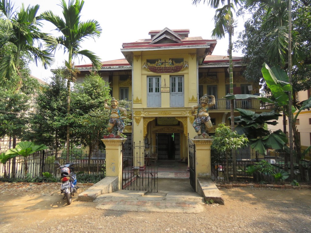 ဒီလမ်းလေးရဲ့ ဦးတိုက်နေရာမှာ ရွှေပိဋကတ်တိုက် ရှိတယ်။ ကိုလိုနီခေတ်လက်ရာ နှစ်ထပ် တိုက်ကျောင်း၊ အဝင်၀ ဘယ်ညာမှာ ဘီလူးလား၊ ဘာလား ၊ ဘယ်လိုခေါ်ရမှန်းမသိတဲ့ အရုပ်နှစ် ရုပ်ရှိတယ်။ ခါးတောင်းကျိုက်ထားတဲ့ ဗိုက်ပူပူ ချက်စူစု နဲ့အရုပ်နှစ်ရုပ်၊ တစ်ရုပ်က ထိုးကွင်း ဒူး ကျနဲ့ တစ်ရုပ်ကတော့ ထိုးကွင်းမပါဘူး။ အပေါ်ထပ် စင်္ကြန် ဘယ်၊ ညာထောင့်တွေမှာလည်း နတ် သားရုပ်နှစ်ရုပ်ရှိတယ်။