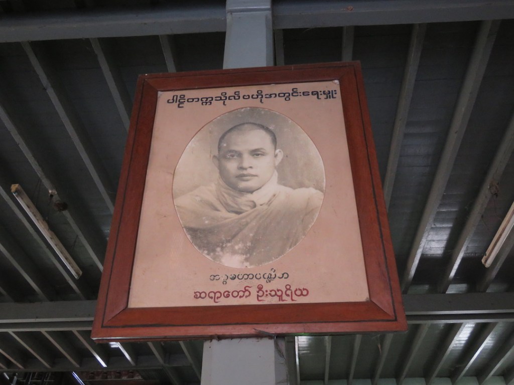 အောက်ထပ်က ကျောင်းတိုင်တစ်ခုမှာ ဆရာတော် ဦးသူရိယ ဓာတ်ပုံရှိတယ်။ ဓာတ်ပုံထဲမှာ ဆရာ တော်က အသက်ငယ်ငယ်ပဲရှိသေးတယ်။ ဒါပေမယ့် မျက်လုံးတွေက တောက်ပပြီး အလွန်ခွန်အား ရှိတဲ့ ၊ ထက်မြက်တဲ့ ပုဂ္ဂိုလ်ဆိုတာ ထင်ထင်ရှားရှားသိနိုင်တယ်။ ဓာတ်ပုံစာသားအရ ဆရာတော် က အဂ္ဂမဟာပဏ္ဍိတ ဘွဲ့တံဆိပ်တော်ရခဲ့တယ်၊ ပါဠိတက္ကသိုလ် ဗဟို အတွင်းရေးမှူးတာဝန်လည်း ယူခဲ့တယ်ဆိုတာ တွေ့ရတယ်။ အပေါ်ထပ်မှာ ဆရာတော်ကြီးရဲ့ ပုံ လို့ ယူဆရတဲ့ ပန်းချီကား ကြီးတစ်ချပ်လည်းတွေ့ရတယ်။ လက်ရှိ သံဃာတွေကတော့ ပါဠိတက္ကသိုလ်ညောင်တုန်း ကျောင်းတိုက် မှာ စာလာသင်တဲ့ စာသင်သား သံ ဃာတွေဖြစ်ပုံရတယ်၊ ဆရာတော် ကြီးပျံလွန် တော်မူတဲ့ နှစ်ကိုမသိကြဘူး။