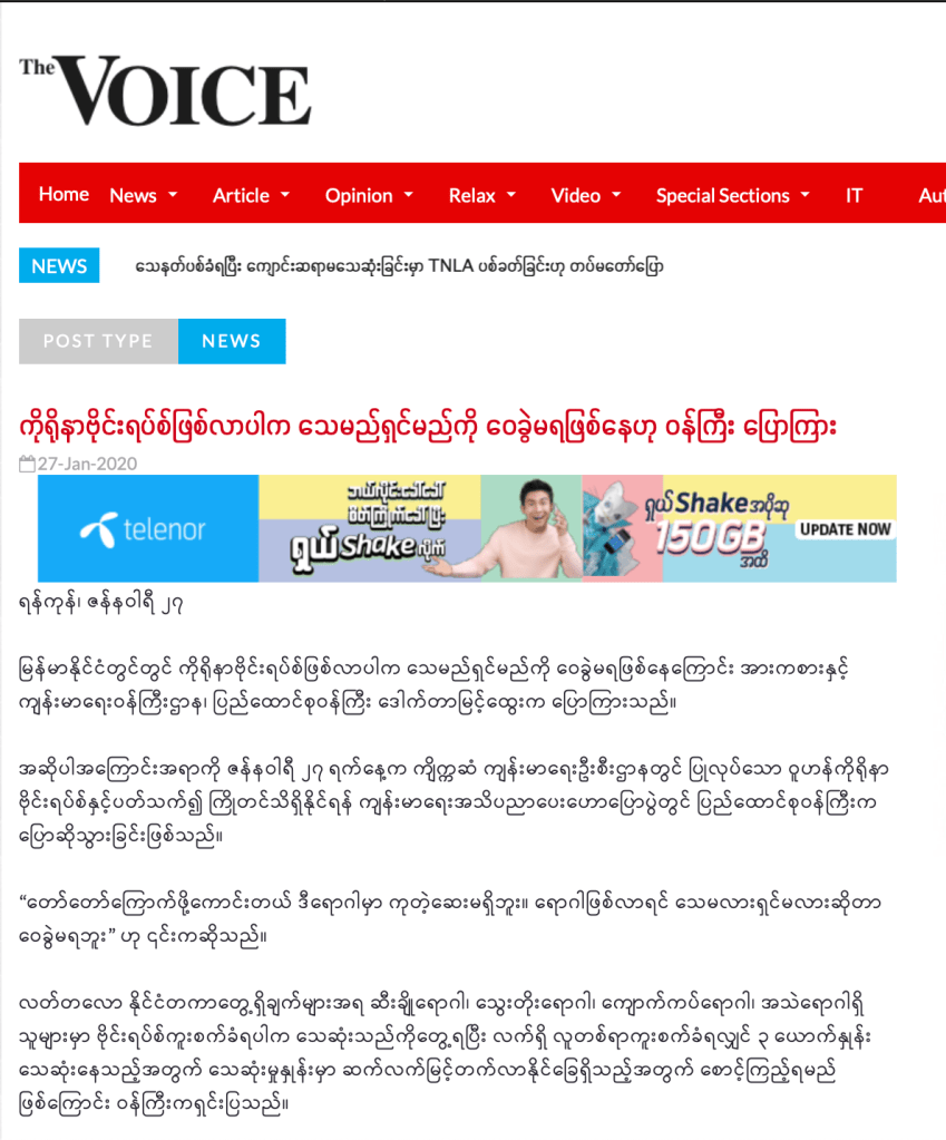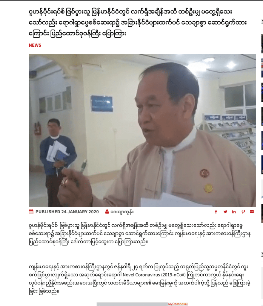 ဝူဟန် ဗိုင်းရပ်စ် နဲ့ ပတ်သက်တဲ့ ပြည်ထောင်စု ဝန်ကြီးဒေါက်တာ မြင့်ထွေး ၏ အားတက်စရာ မှတ်ချက်များ