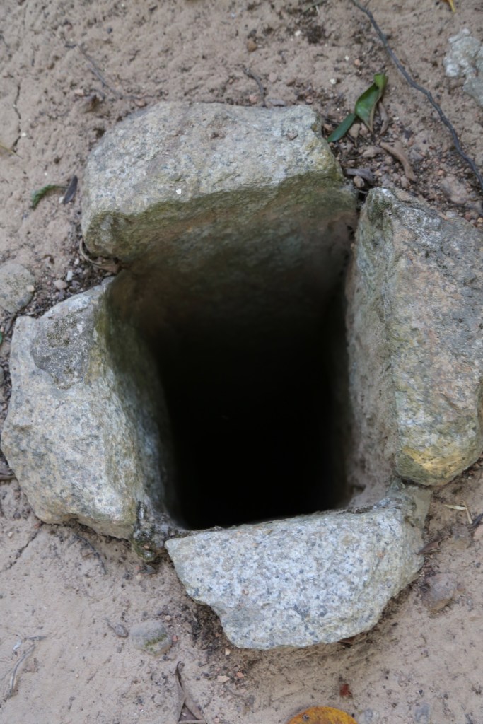 အဘကြီးအပြောအရ အဲဒီအောက်မှာ အခန်းသုံးခန်းရှိတယ်။ ညောင်ပင်အောက်တည့်တည့် လောက်မှာ ၈ ပေ ပတ်လည် အခန်းကျဉ်းတစ်ခုရှိတယ်။ တံခါးရှိတယ်။ ဘယ် ၊ ညာမှာ ပေ ၂၀ ၊ ၂၅ လောက်ကျယ်တဲ့အခန်းကျယ်နှစ်ခုရှိတယ်။ ၁၉ ၉ ၀ ကျော်လောက်ရောက်တော့ အတွင်း ဘက် မှာမြေပြိုတာတွေရှိလာပြီး တစ်ခန်းပဲကျန်တော့တယ်။ နောက်တော့လုံခြုံရေးအရ အဝင်ဝကို ပိတ် ပစ်လိုက်ပြီး ဘေးမှာကျောက်ပြားတွေနဲ့ ရင်ပြင်လုပ်လိုက်တယ်။ မူလ ဝင်ပေါက်ကတော့ အတော် ကျယ်တယ်လို့ပြောတယ်။ အခုထိတော့ ဘေးက သရက်ပင်အောက်မှာ လေဝင် ပေါက်တစ်ခုကို တွေ့နိုင်သေးတယ်။ အဲဒီလေဝင်ပေါက်နောက်မှာ ရွှေတိဂုံဘုရားတံတိုင်းရှိတယ်။ သေနတ်ပစ် ပေါက်နေရာကနေ ကန်တော်မင်္ဂလာပန်းခြံနဲ့ ကားလမ်းကို လှမ်းမြင်ရတယ်။