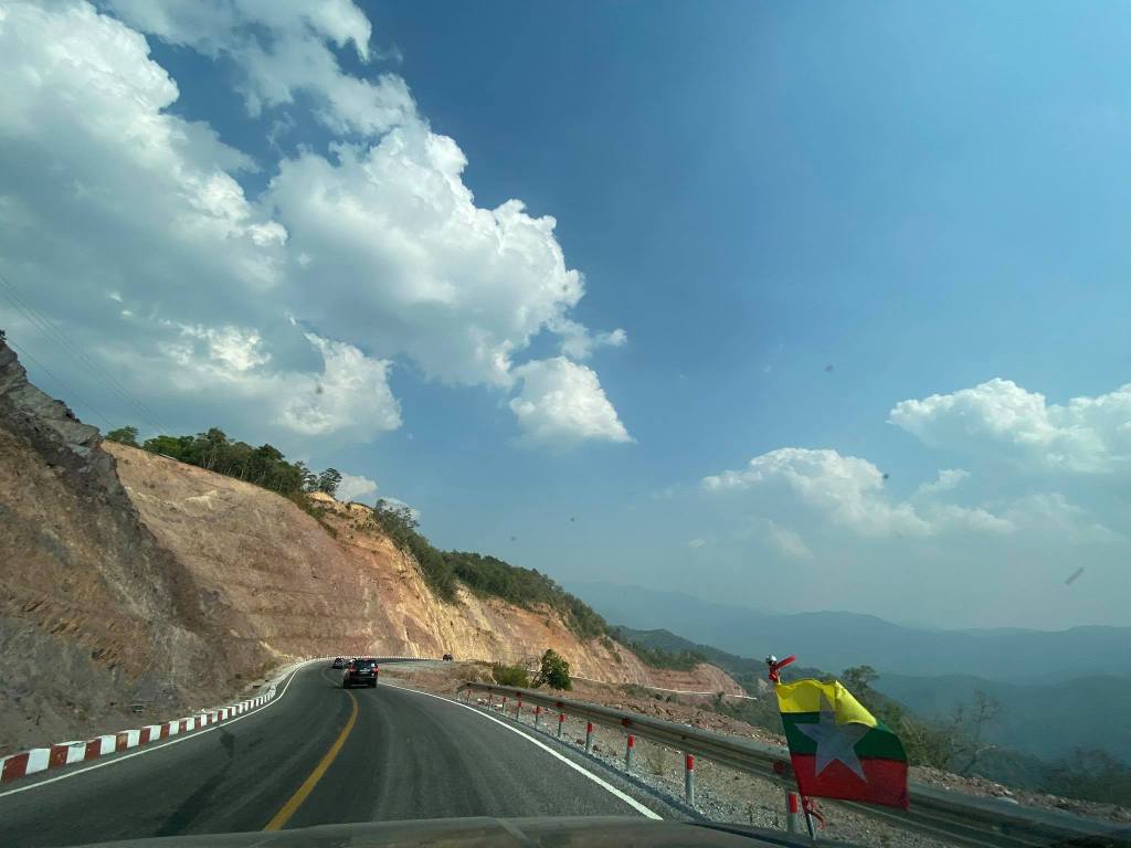အခြားနိုင်ငံတစ်ခုရဲ့ အဝေးပြေးလမ်းမပေါ်မှာ မြန်မာနိုင်ငံအလံကို လွှင့်ပြီး ယာဉ်တန်းနဲ့ခရီးသွားရတဲ့အခါ ခံစားရတဲ့ နိုင်ငံချစ်စိတ်ကို