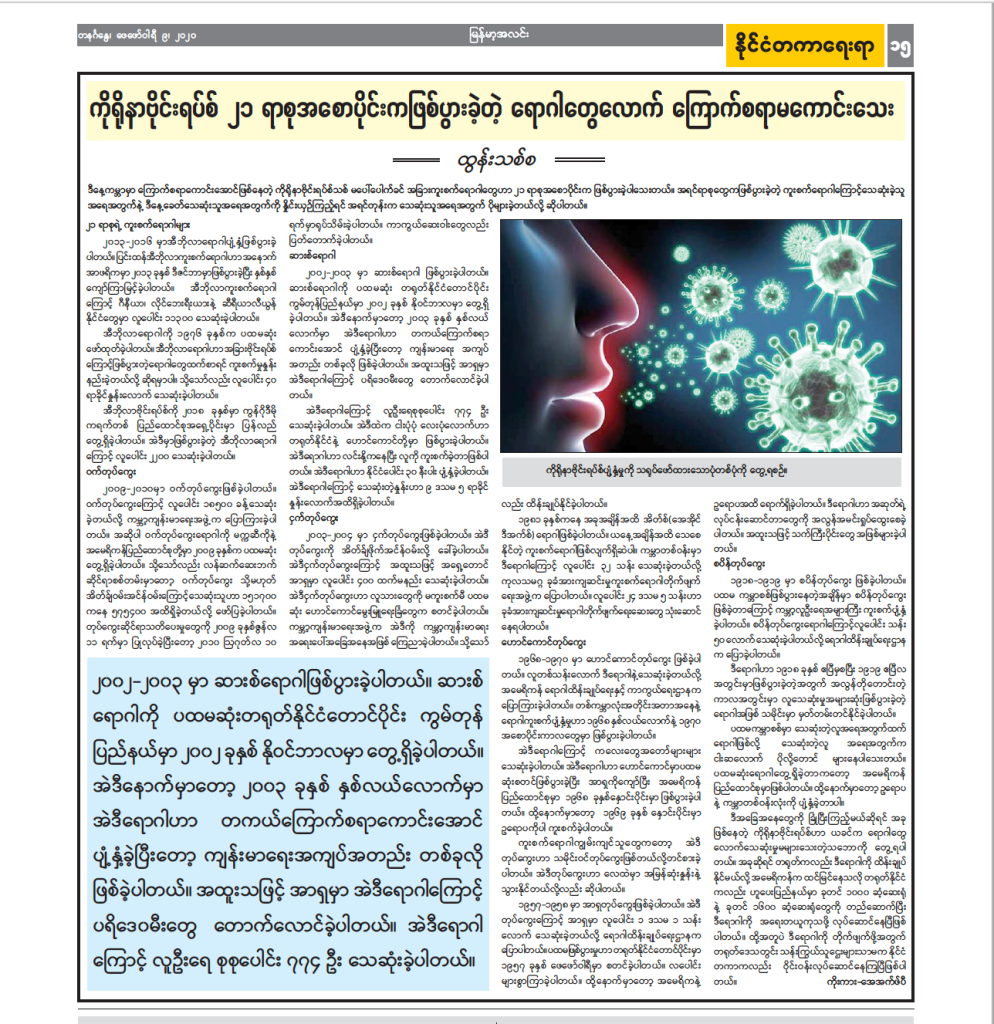 ပြန်ကြားရေးဝန်ကြီးဌာန က ဝူဟန်ဗိုင်းရပ်စ်နဲ့ပတ်သက်ပြီး ပြည်သူတွေ စိတ်မပူအောင် အသိပညာပေးတဲ့ ဆောင်းပါး