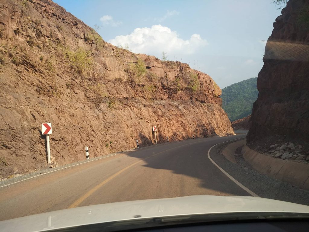 ဒီလမ်းကထိုင်းနိုင်ငံရဲ့ အိမ်နီးချင်းနိုင်ငံများစီးပွားရေးဖွံ့ဖြိုးတိုးတက်မှုပူးပေါင်းဆောင်ရွက် ရေး အေဂျင်စီ (Neighbouring Countries Economic Development Cooperation Agency) က ဖောက်ပေးထားတာ။ ကျွန်တော်တို့သွားမယ့် လွန်ပရာဘွန်မြို့အထိ ၁၁၄ ကီလိုမီတာရှည်တယ်။ လမ်းက Hongsa အထွက် ၉ ၃ ကီလိုမီတာကနေ လွန်ပရာဘွန် မရောက် ခင် ၈ ကီလိုမီတာအထိ က အတက်အဆင်းများတယ်။ တစ်ချို့ အဆင်း၊အတက်နေရာတွေက ၁၅% အထိ မတ်စောက်ပြီး နှစ်ကီလို မီတာ၊ နှစ်ကီလိုမီတာခွဲလော က်အထိ အဆင်း၊ အတက်ရှည်တယ်။