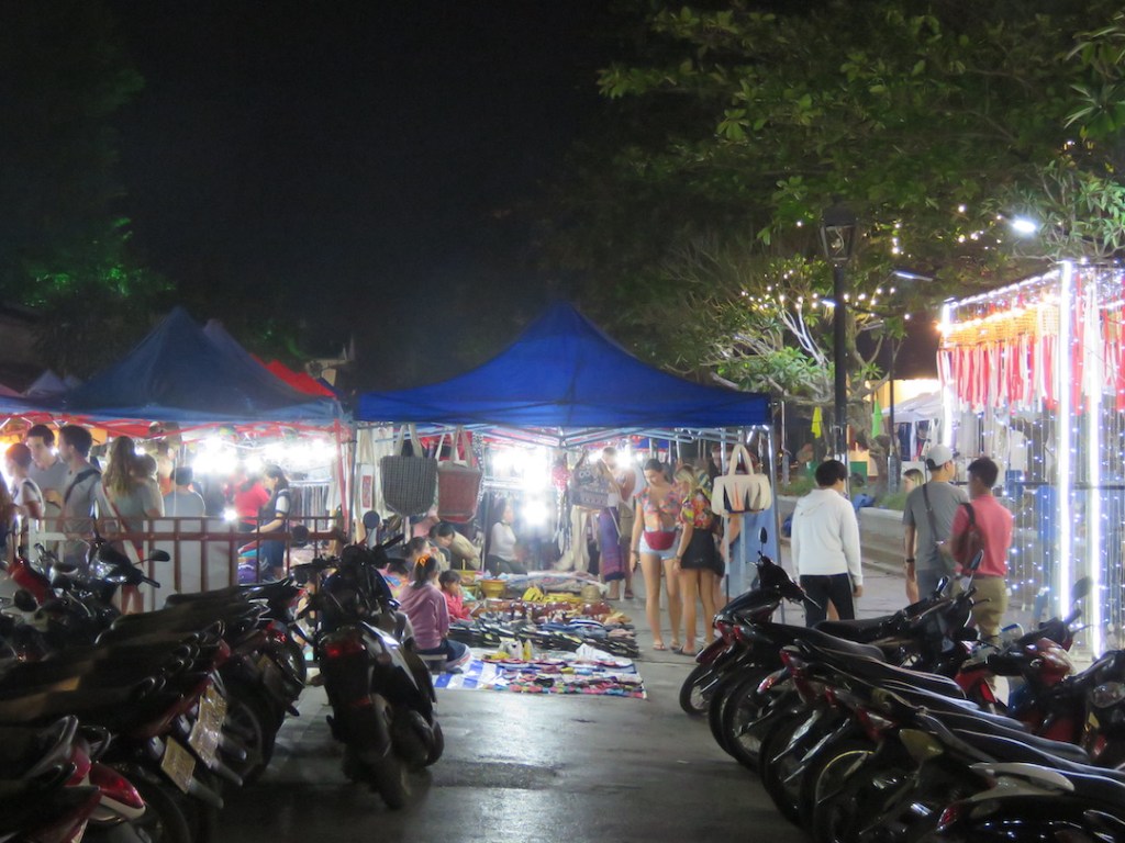 လွန်ပရာဘန် ည ရဲ့ ဆွဲဆောင်မှုတစ်ခုကတော့ ညဈေးတန်းပါပဲ။ ဒီညဈေးတန်းက မြို့ရဲ့ အဓိက လမ်းမကြိးတစ်ခုဖြစ်တဲ့ Sisavangvong လမ်းမှာ ခင်းကျင်းရောင်းချတာဖြစ်ပြီး ညနေ ငါးနာရီက နေ ည ဆယ်တစ်နာရီအထိ ဖွင့်ပါတယ်။
