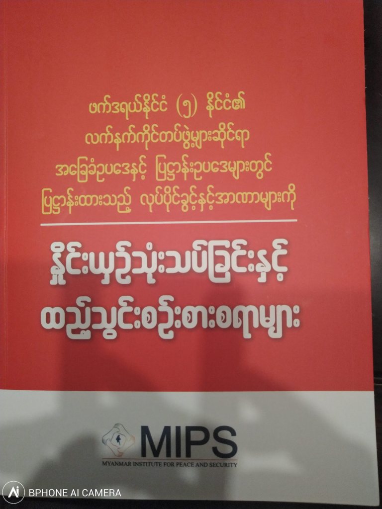 ဒီနေ့ မှာ MIPS (Myanmar Institute for Peace and Security ) က ထုတ်ဝေတဲ့ စာအုပ် မိတ်ဆက်ပွဲအခမ်းအနားကို တက်ရောက်ခွင့်ရခဲ့တယ်။