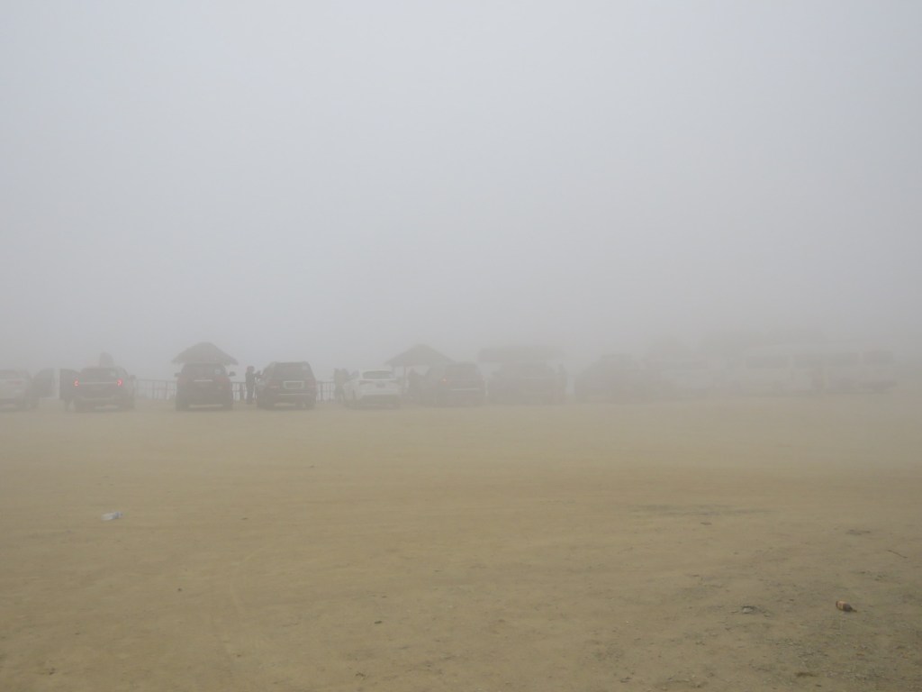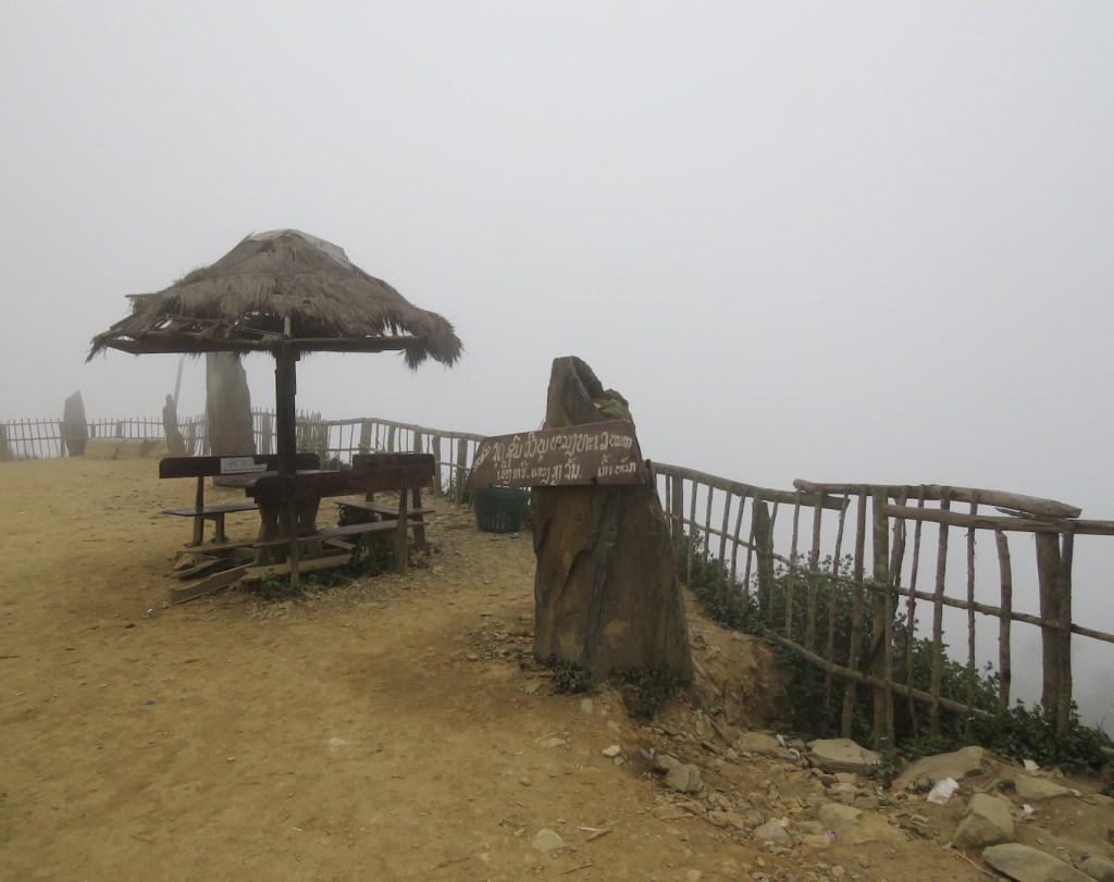 မြင်ကွင်းမကောင်းပေမယ့် လမ်းက အတက်အဆင်း မရှိတော့ပဲ တောင်ကြောအတိုင်းမောင်းရတာ ဖြစ်လို့ နည်းနည်းကံကောင်းတယ်။ ခဏနေတော့ မြင်ကွင်းက ပိုဆိုးလာတယ်။ ဆယ်ကိုက် လောက်ပဲ မြင်ရတော့တယ်။ ဒါပေမယ့် ရှေ့ပြေးကားက ဘယ်ဘက်ကို ချိုးဝင်လိုက်တယ်။ ဒါဟာ ရှုခင်းသာနေရာပဲ။ အမြင့်ပေကို ကြည့်လိုက်တော့ ၁၅၁၇ မီတာတဲ့။ ဒီနေရာမှာ ဝက်သားကင်၊ ကောက်ညှင်း နဲ့ အသီးအနှံတွေရောင်းတဲ့ဆိုင်လေးတွေရှိတယ်။ ခရီးသွားတွေအတွက် အိမ်သာ ရှိတယ်။ ထိုင်းငွေနဲ့ ငါးဘတ်ပေးရတယ်။ တောင်ပေါ်ရေထွက်ကနေ ပိုက်နဲ့သွယ်ထားတဲ့ ရေတိုင် တစ်ခုကို စားသောက်ဆိုင်တန်းအနောက်ဘက်မှာတွေ့ရတယ်။
