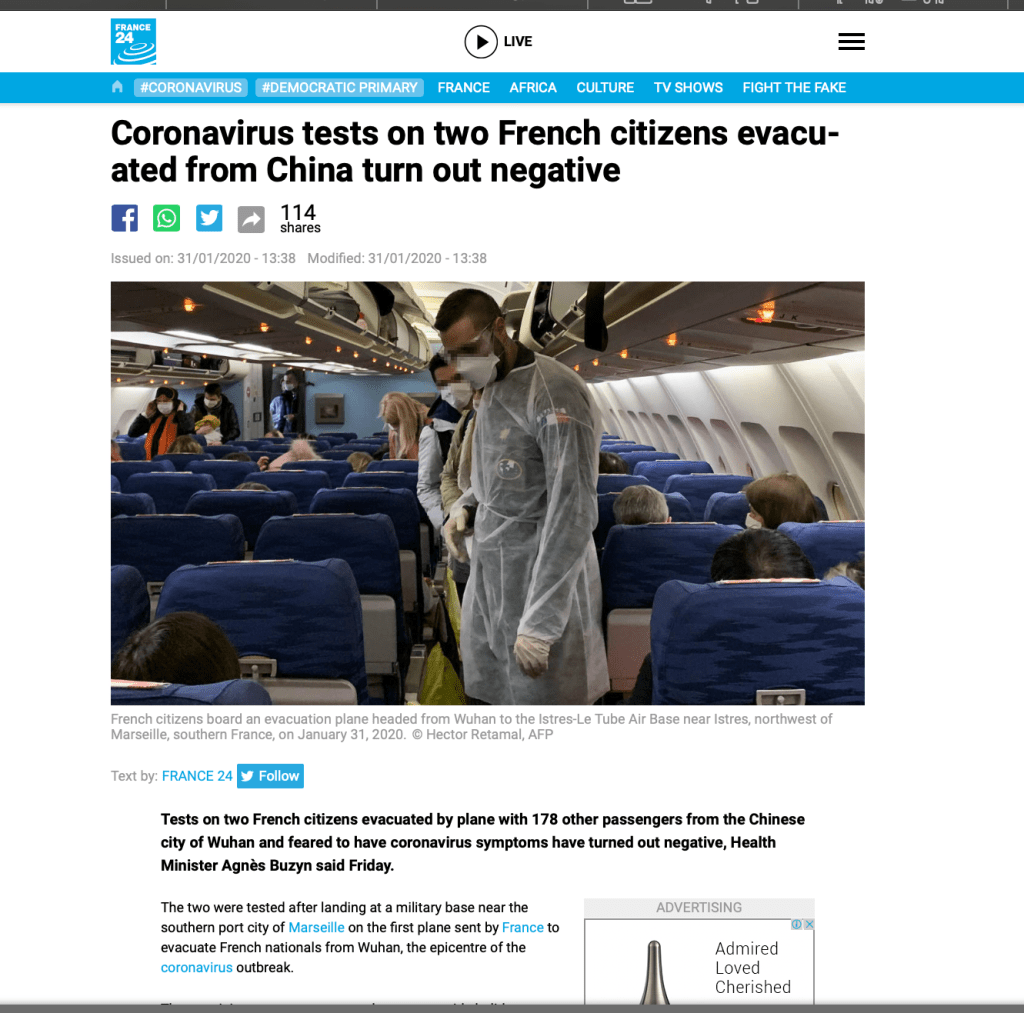 ၃။ ပြင်သစ်နိုင်ငံကပြန်လည် ခေါ်ယူခဲ့တဲ့ ပြင်သစ်နိုင်ငံသား ၁၇၈ ဦးက ဇန်နဝါရီလ ၃၁ ရက်နေ့ မှာ ပြန်လာတယ်။ ပုံ ၆