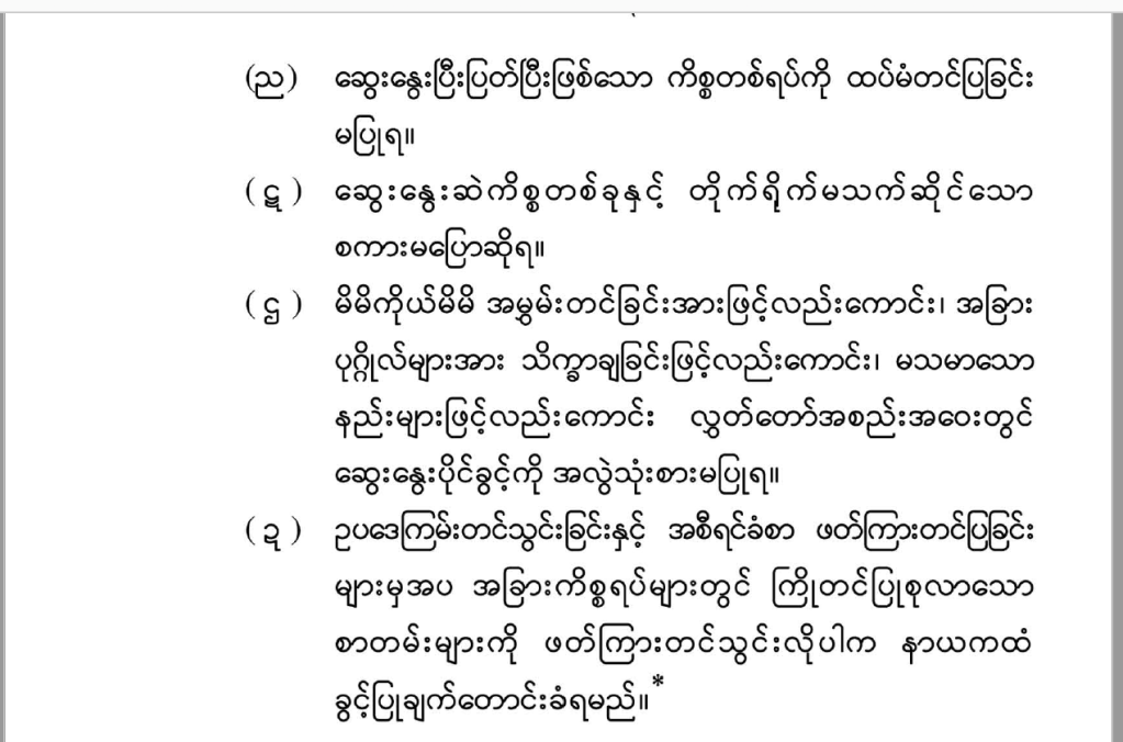 ၁။ ကိုယ်ထိလက်ရောက် မလုပ်ဘူး။