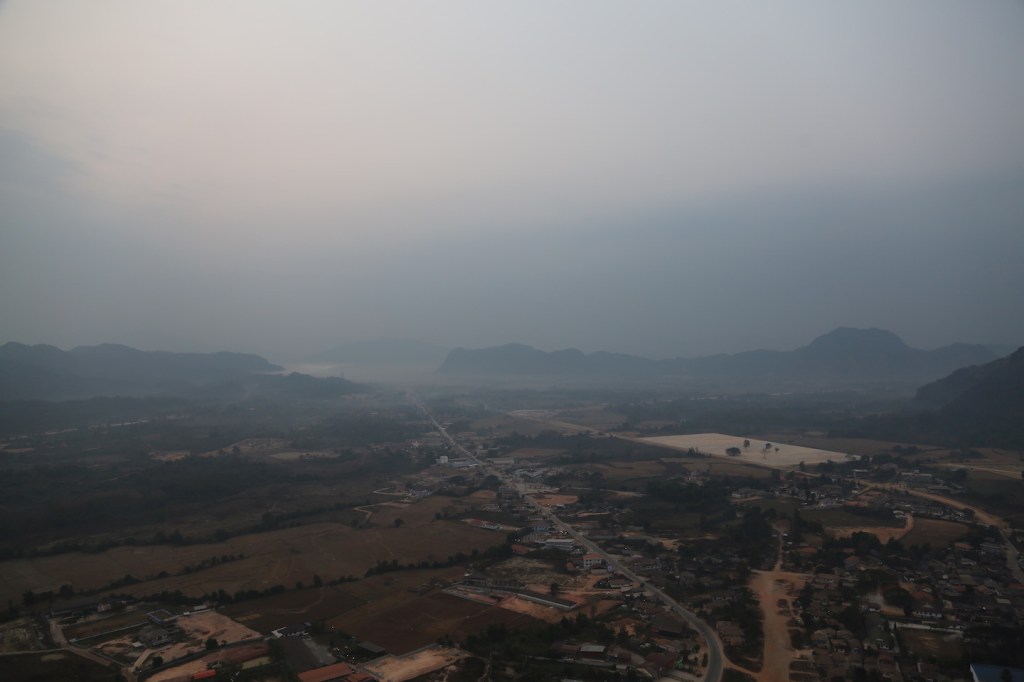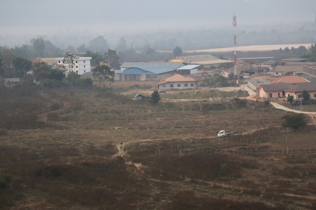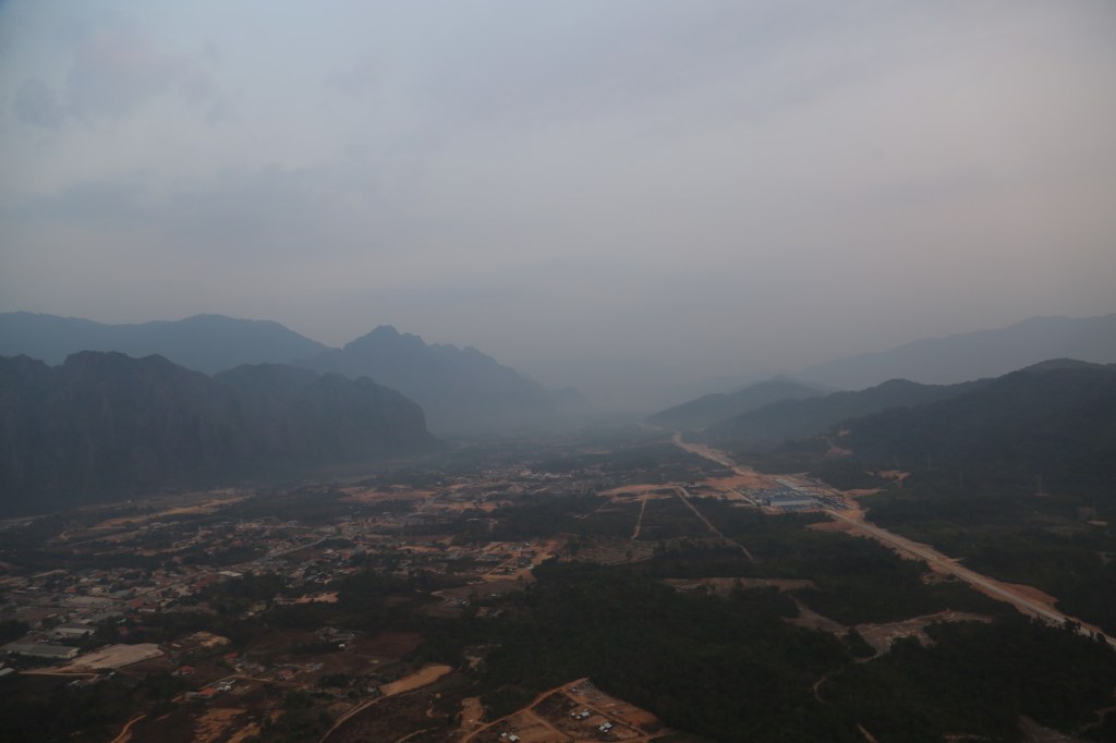 မီးပုံးပျံပေါ်ကနေ မြို့ကို လက်ဖဝါးပေါ်တင်ကြည့်သလိုမြင်နေရတယ်။ နမ့်ဆောင်မြစ်ကမ်းနားမှာ ဟိုတယ်ကြီးတွေ၊ မြို့ရဲ့ အခြားနေရာတွေမှာတော့ အိမ်ပုလေးတွေ၊ မြို့ဟာ ရှိတဲ့ဧည့်သည်တွေနဲ့ မရှိတဲ့ ဧည့်သည် တွေကြောင့်နှစ်ခြမ်းကွဲနေတယ်။ မြို့အရှေ့ဘက်ခြမ်းမှာ ဖဲကြိုးပြားချထားသလို ကွန်ကရစ် လမ်းမကြီးရှိတယ်။ ဒါဟာ လာအိုနိုင်ငံအရှေ့မြောက်ဘက် တရုတ် နယ်စပ်နေ တောင်ဘက် ထိုင်းနယ်စပ်ကို သွားမယ့် မြန်နှုံးမြင့်ရထားလမ်းကြီးပဲ။ ဒီရထားလမ်းက ကူမင်းကနေ စင်္ကာပူအထိဖောက်မယ့် မြန်နှုံးမြင့်ရထားလမ်းစီမံကိန်းရဲ့ အစိတ်အပိုင်းလည်းဖြစ်တယ်။ အဲဒီ လမ်း ဘက်မှာ ဂိုဒေါင်ကြီး တွေ၊ ဝန်ချီ စက်တွေနဲ့ စီမံကိန်းနေရာတစ်ခုရှိတယ်။ အခုတော့ ရထားလမ်း ဖောက်လုပ်ရေး အတွက် စီမံကိန်းနေရာပေါ့။ နောင်မှာတော့ ဘူတာရုံကြီးဖြစ်လာမယ်လို့ ဆို တယ်။