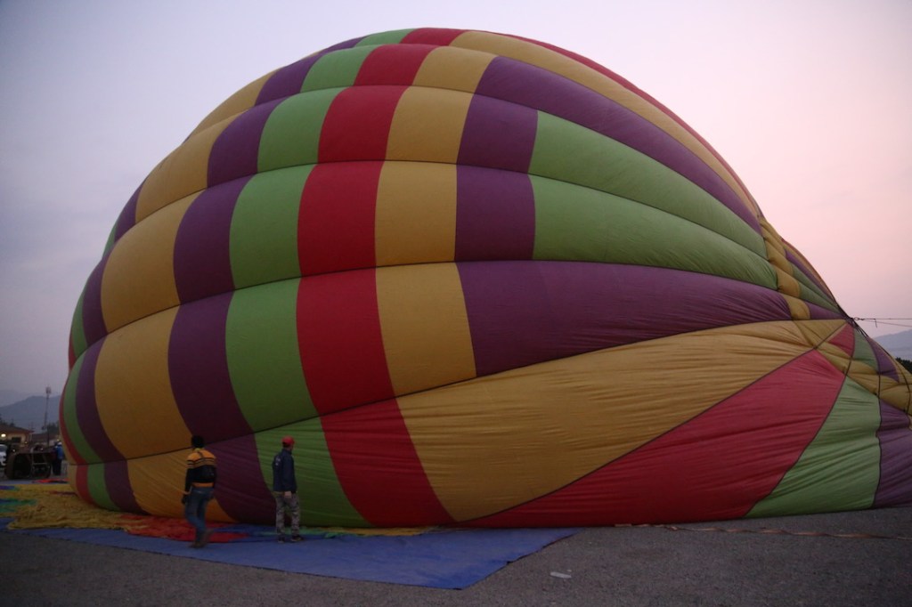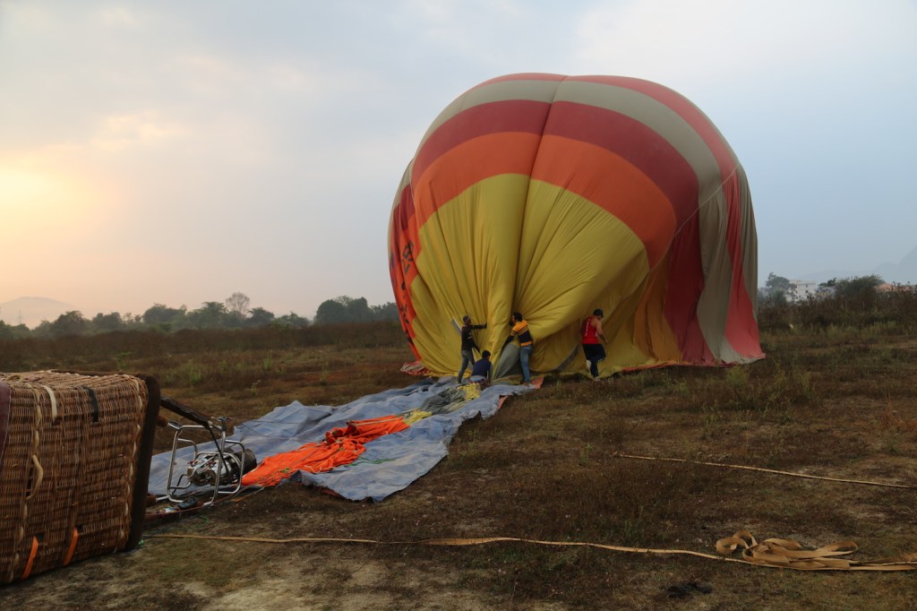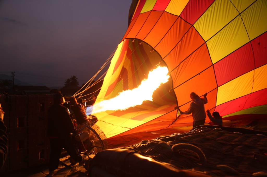 ပထမဆုံး မီးပုံးပျံ ကိုယ်ထည်ကြီးကိုမြေပေါ်မှာ အလျားလိုက်ချထားတယ်။ ပွန်းပဲ့တာတွေမဖြစ် အောင် တာလပတ်စတွေအောက်က ခံထားတယ်။ အဲဒီလို နေရာချထားပြီးတော့ ပန်ကာကြီးတစ် လုံးနဲ့ လေမှုတ်သွင်းလိုက်တဲ့အခါ တစ်ဖြေးဖြေးနဲ့ ကိုယ်ထည်ကြီးက ဖောင်းလာတယ်။ သူတို့ လို ချင်တဲ့အနေအထားရောက်တဲ့အခါ မီးပုံးပျံခြင်းကြီးမှာ တပ်ထားတဲ့ ပရိုပိန်းဓာတ်ငွေ့သုံးမီးကို ဖွင့်ပြီး မီးပုံးပျံကိုယ်ထည်ထဲက လေတွေကို အပူပေးလိုက်တယ်။ မီးပုံးပျံ ပျံတက်နိုင်ဖို့ဆိုရင် အထဲက လေ ကို ၂၀၀ ဒီဂရီ အထိ အပူပေးရတယ်လို့ ဝန်ထမ်းတစ်ယောက်က ရှင်းပြတယ်။