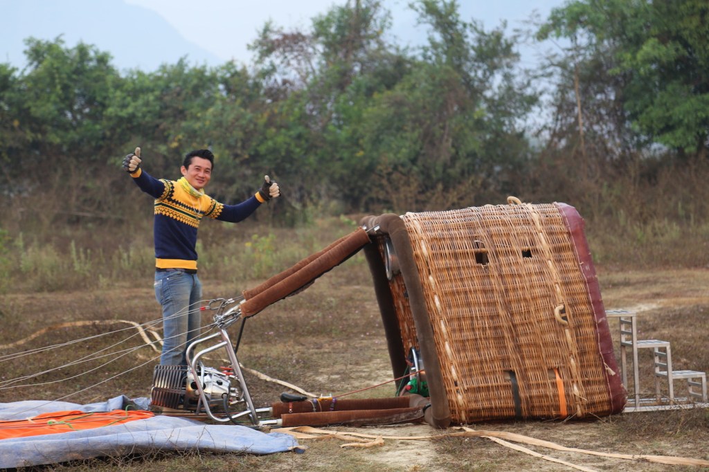 ဒီလို နဲ့ ဖေဖော်ဝါရီ ၆ ရက်နေ့မနက် ဗီယန်ကျင်းမြို့ကို မသွားခင် မီးပုံးပျံစီးဖို့ စီစဉ်ကြတယ်။ မနက်ကျတော့ ငါးနာရီခွဲ ဟိုတယ်ကနေ ထွက်ရတယ်။ မြို့လယ်က လေယာဉ်ကွင်းဟောင်းနေရာ ကို မီးပုံပျံကွင်းလုပ်ထားတယ်။ အဲဒီနေ့က နေဟာ ၆နာရီ ၁၅ မိနစ်မှ စထွက်မယ်ဆိုတော့ ငါး နာရီ လေးဆယ့်ငါးလောက်မှာ စပြီးပြင်ဆင်ကြတယ်။ အဲဒီနေ့က ကျွန်တော်တို့ စထွက်တဲ့ နေ ရာကနေ မီးပုံးပျံလေးလုံးတက်တယ်။