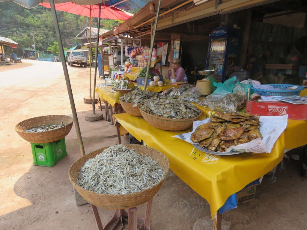 တောင်ကြောထိပ်ကနေ အောက်ကို ဆင်းလာတဲ့အခါ လမ်းခွဲတစ်ခုတွေ့တယ်။ လမ်းဆုံနေရာ မှာ အပျော်စီးသဘောၤပုံတွေနဲ့ ကြော်ငြာတွေထောင်ထားတယ်။ ဘယ်ဘက်ကို သွားရင် Na Nam ဆိုတဲ့ ရွာလေးကိုရောက်တယ်။ တည့်တည့်ဆက်သွားရင် ဟိုတယ်တွေဘက်ကို ရောက်တယ်။ ကျွန်တော်တို့ကားက ရွာလေးဘက်ကို ဝင်လိုက်တယ်။ ဝင်လိုက်တာနဲ့ လမ်းဘေးမှာ ဘတ်စ် ကားတွေ၊ ကိုယ်ပိုင်ကားတွေရပ်ထားတာတွေ့ရတယ်။ ငါးပိ၊ ငါးခြောက်ရောင်းတဲ့အိမ်ဆိုင်လေး တွေရှိတယ်။ လမ်းအဆုံးမှာ သဘောၤဆိပ်၊ သဘောၤဆိပ် ဘေးမှာ Nam Ngum စားသောက် ဆိုင် လို့ ဆိုင်းဘုတ်ရေးထားတဲ့ အုတ်ကြွတ်မိုးအဆောက်အဦတစ်ခုရှိတယ်။ ဆည်ကမ်းနဖူးမှာ ဆောက် ထားတဲ့ ဒီဆိုင်က ကျွန်တော်တို့နေ့လည်စာစားမယ့်ဆိုင်ပဲ။ ဆိပ်ကမ်းမှာ ခရီးသွားတွေ အတွက် သတင်းအချက်အလက်မ ျှဝေပေးတဲ့ ရုံးခန်းလေးရိုှတယ်။ ရေလုပ်ငန်းဖွံဖြိုးတိုးတက်ရေး ရုံး ဆိုတာလည်း တွေ့တယ်။
