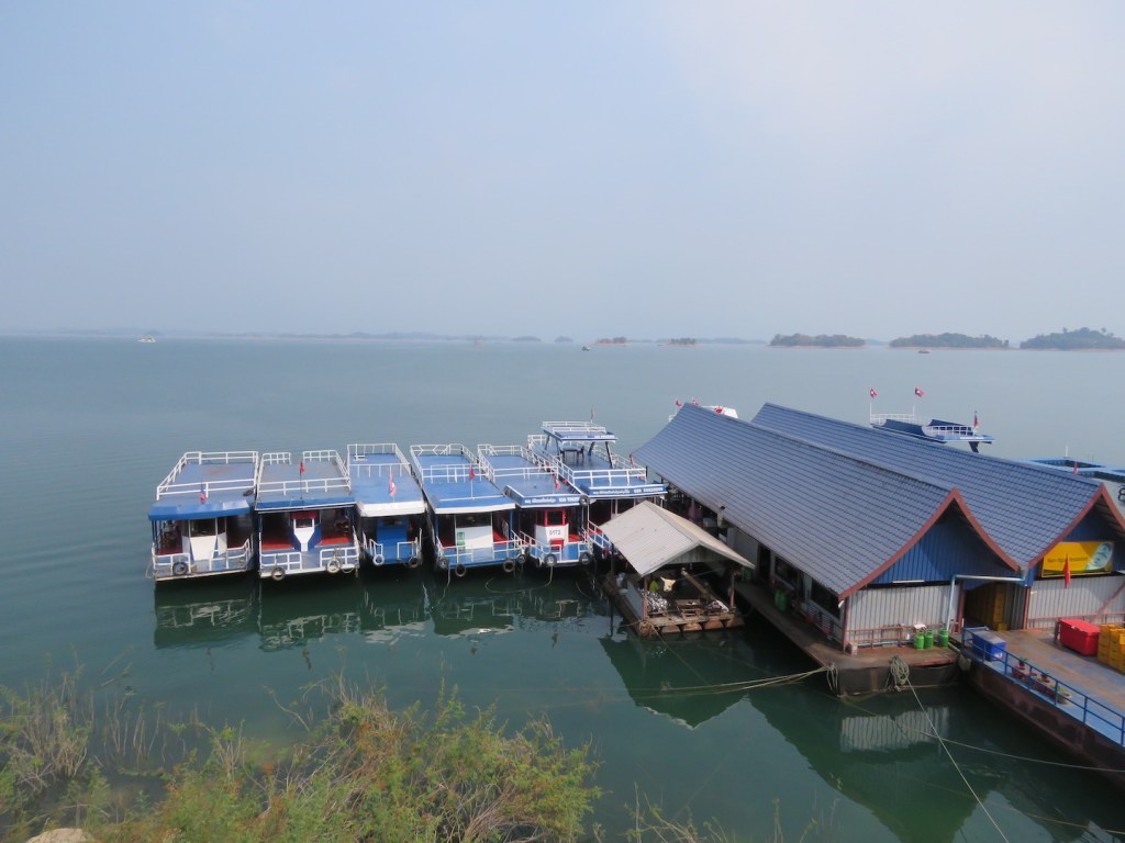 ဆိပ်ကမ်းမှာ ရေယာဉ်အရွယ်အစားမျိုးစုံ ဆယ်စီးလောက်ရပ်ထားတာတွေ့ရတယ်။ ဟိုး အဝေး ရေပြင်ထဲမှာ နှစ်စီးတွေ့တယ်။ ငါးလုပ်ငန်းရုံးဘက်က ဆိပ်ခံမှာလည်း ဆယ်စီး လောက်ရှိတယ်။ အဲဒီမှာတော့ မော်တော်အသေးတွေများတယ်။ ရုံးပိတ်ရက် တွေဆိုရင်တော့ ဧည့်သည်များတယ်တဲ့။ ကျွန်တော်တို့ရောက်ချိန်မှာတော့ ဧည့်သည် နှစ်ဆယ် လောက်ပဲတွေ့တယ်။ ထိုင်းလို့ထင်ရတဲ့အုပ်စုကတော့ စားသောက်ဆိုင်က အစား အသောက်တွေမှာ ပြီး သဘောၤပေါ်တင်ထွက်သွားတယ်။