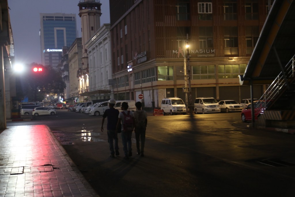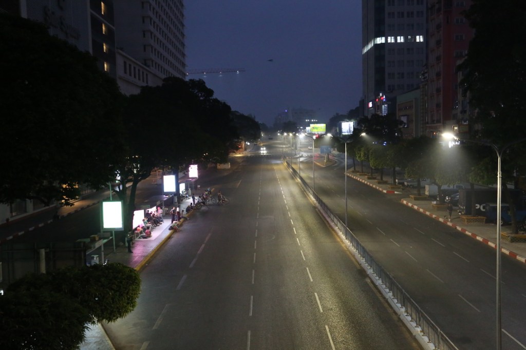 ဆူးလေဘုရားက ပိတ်ထားတယ်။ ဒါနဲ့ မဟာဗန္ဓုလလမ်းအတိုင်းသွားတယ်။ ဗိုလ်တထောင် ဘုရား လမ်းကို ချိုးတယ်။ အနော်ရထာပေါ် တက်တယ်။ စားနေကျ ကောက်ညှင်းပေါင်းသည် မတွေ့ တော့ဘူး။ ဝယ်နေကျ ပန်းသည် မမြင် ရတော့ဘူး။ မုန့် ဟင်းခါး (ဘဲဥ) ၈၀၀၊ မုန့်ဟင်းခါး (အကြော်) ၆၀၀၊ မုန့်ဟင်းခါး (အလွတ်) ၅၀၀ ဆိုတဲ့ ပလတ်စတစ်လောင်းထားတဲ့ ဆိုင်းဘုတ် တစ် ခုသစ်ပင်မှာချိတ်ထားတယ်။ဆိုင်ကတော့ဘယ်ရောက်သွားပြီးလဲ မသိနိုင်ဘူး။ စားဖွယ်စုံ လက်ဖက် ရည်ဆိုင်ကြီးတွေလည်း ပိတ် ထားတယ်။ ပါဆယ်ဝယ်လို့ရတဲ့ဆိုင်တစ်ဆိုင်၊ နှစ်ဆိုင်တွေ့တယ်။