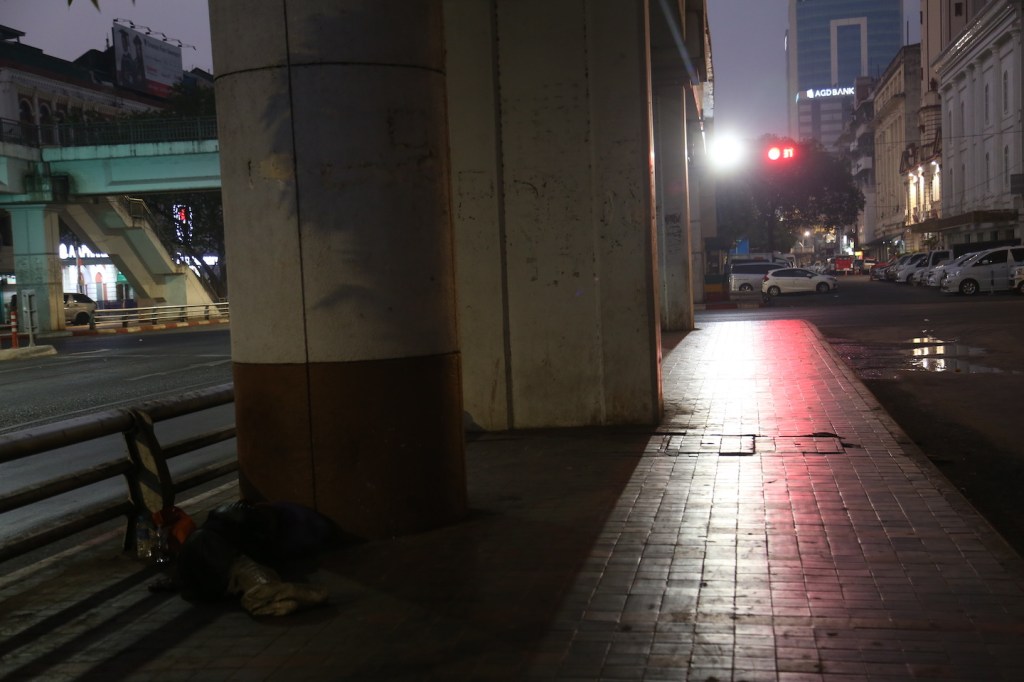 ရန်ကုန်သားတွေထဲမှာဘယ်သူစည်းကမ်းရှိသလဲ၊ဘယ်သူစည်းကမ်းမဲ့လဲဆိုတာ စစ်ဆေးတဲ့ လူကူး တံတားအောက်မှာ လူတစ်ယောက်အိပ်နေတယ်၊ ဘေးမှာ ရေသန့်ဘူးရယ်၊ ပိုင်ဆိုင်မှုတွေ ထည့် ထားတဲ့ အိပ်တစ်လုံးရယ်ရှိတယ်။ ဗိုင်းရပ်စ်ဟာ သူနဲ့ မဆိုင်ဘူး။ သူ့အနား ဘယ်သူမှ မကပ်ဘူး။ လက်ဆေးဖို့လည်း မလိုဘူး။