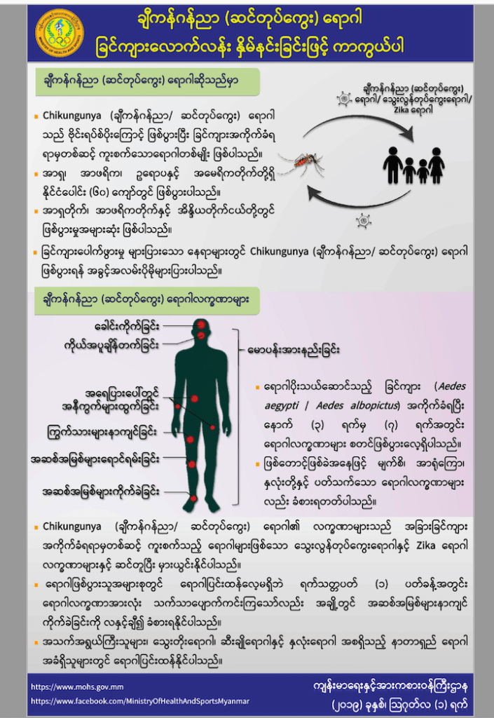 ဒါ့အပြင် မိုးတွင်းမှာဖြစ်လေ့ရှိတဲ့ ရာသီတုပ်ကွေးနဲ့ သွေးလွန်တုပ်ကွေး/ ဆင်တုပ်ကွေး ကူးစက်ပုံ ကူးစက်နည်းမတူဘူးဆိုတာလည်း လူတိုင်းနားလည်အောင် ပညာပေးသင့်တယ်လို့ထင်ပါတယ်။