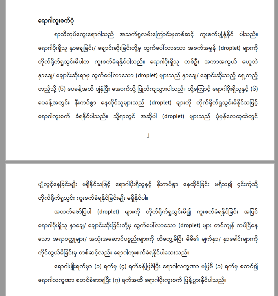 ကိုဗစ် ၁၉ ကြောင့် အခြားကူးစက်ရောဂါတွေကိုပါ အုပ်ချုပ် ရေး၊ ဥပဒေပြုရေး ကဏ္ဍ တာဝန်ရှိသူများ၊ စေတနာ့ဝန်ထမ်းများ နဲ့ သာမန်ပြည်သူများ အားလုံး စိတ်ဝင်စား လာတာကောင်းပါတယ်။ ဒါပေမယ့် ရောဂါကာကွယ်၊ ထိန်းချုပ်ရေးနဲ့ပတ်သက်တဲ့ သတင်း အချက်အလက်တွေကိုတော့ မှန်မှန်ကန်ကန် သိအောင် လေ့လာပြီး ပြောဆို လုပ်ဆောင်တာက ပိုပြီး အကျိုးရှိမယ်လို့ ယုံကြည်ပါတယ်။