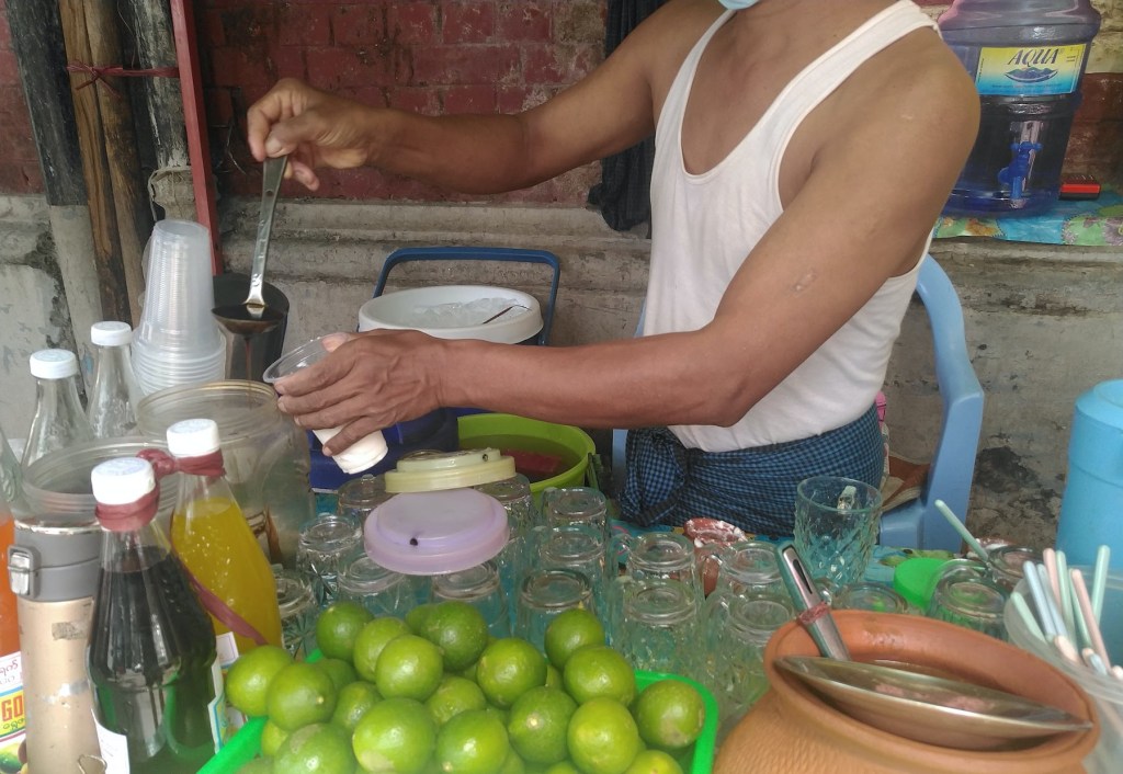 စည်ပင်ကားတစ်စီးရောက်လာတယ်။ အလုပ်သမားတွေ ဆင်းတယ်။ ပစ္စည်းတွေချတယ်။ ရေနှုတ် မြောင်းတွေချဲ့မယ့်အဖွဲ့တွေထင်တယ်။ လမ်းပေါ်မှာ၊ လမ်းဘေးမှာ ကားတွေပြည့်လာပြီ။ ရုံးချိန် ရောက်ပြီကိုး။ ငွေရှင်းပြီးထတယ်။ မနီးမဝေးမှာ ရှိတဲ့ အိုးလေးနဲ့ ဒိန်ချဉ်ဆိုင်မှာ ပါဆယ် ဆွဲ တယ်။ ဆိုင်ဖွင့်တာကြာပြီလားဆိုတော့ သင်္ကြန်ပြီးထဲက ဖွင့်တာပဲတဲ့။ လမ်းဘေးဆိုင်တွေ ပိတ်ရ တယ်မဟုတ်လားလို့မေးတော့ အဲဒီအချိန်ကပါဆယ်ပဲရောင်းတာလေလို့ပြောတယ်။ ဟုတ်သားပဲ။
