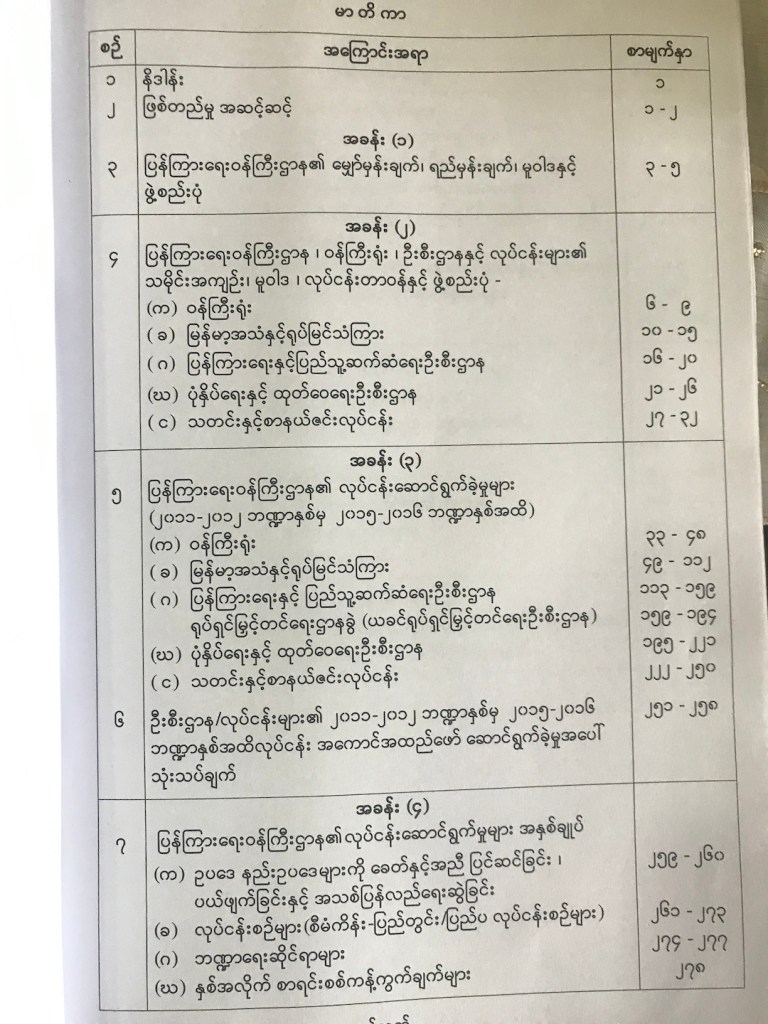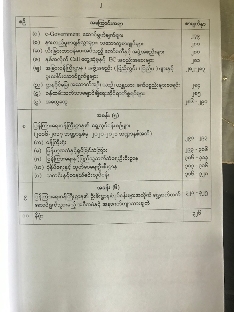 ၁။ ငွေကြေးသုံးစွဲရမယ့်လုပ်ငန်းတွေမှာ အစိုးရ ဘတ်ဂျက်က တရားဝင်သုံးတာကိုပဲ အားပေး ပါ။ အလှုခံတာ၊ အခြားနည်းလမ်းနဲ့ ရှာပြီး အလုပ်ဖြစ်ရင် ပြီးရောလုပ်တာမျိုးကို အားမပေးပါနဲ့။