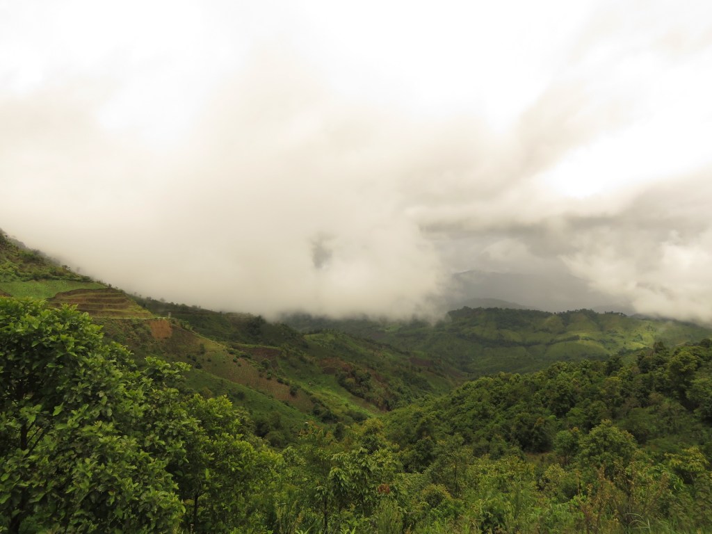 တောင်ကျရွာက ထွက်တော့ မိုးဖွဲဖွဲ ရွာလာတယ်။ မိုးနှင်းတွေကြောင့် ပတ်ဝန်းကျင်ရှုခင်းကို ကောင်းကောင်း မမြင်ရဘူး။ ကားမောင်းရတာလွမ်းစရာကောင်းတယ်။ မိုးနှင်းတွေဝေနေတဲ့ တောင်ပေါ် ခရီးကို သွားရတဲ့အခါ မဲခေါင်ခရီးသွားချိန်က လာအိုနိုင်ငံတောင်ထိပ်၊ မိုးနှင်းတွေကြားမှာ White Lion အဖွဲ့ရဲ့ “ Till Death Do Us Part” သီချင်းလေးကြားခဲ့ရတာကို သတိရတယ်။