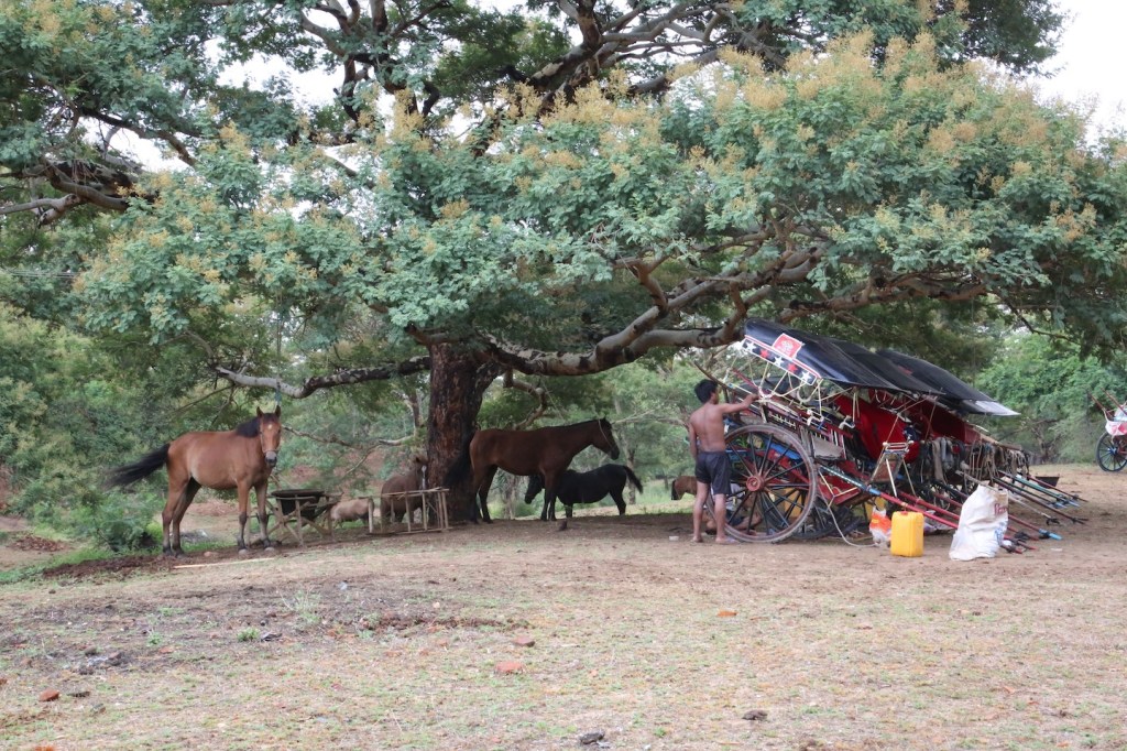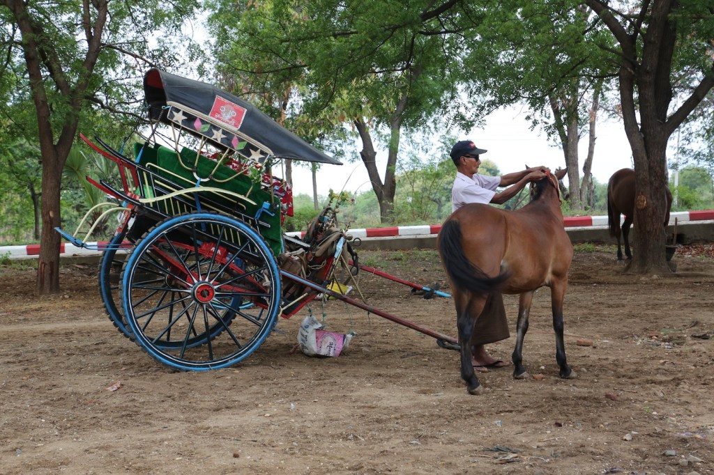 အရင်ကတော့ ပုဂံရောက်ဧည့်သည်တွေဟာ စက်ဘီးငှားစီးရင်စီး၊မစီးရင် မြင်းလှည်းစီးပေါ့။ အခု တော့ အီးဘိုက် တစ်စီး တစ်နေ့ခြောက်ထောင်၊ ဒါမှမဟုတ် တုတ်တုတ် တစ်စီး တစ်နေ့ နှစ်သောင်းနဲ့ ဘုရားစုံလှည့်ဖူးနေကြတော့ မြင်းလှည်းတွေက ဂိတ်မှာ ငုတ်တုတ်မေ့နေတော့ တာပဲ။ မြင်းလှည်းက တစ်နာရီ ဆိုရင် တစ်သောင်းသုံးထောင်၊ တစ်နေကုန်ဆိုရင် သုံးသောင်း ခွဲ လောက်မှာ လိုက်နိုင်တယ်။ လူစာ၊ မြင်းစာ တွက်ရသေးတာကိုး။ နောက်ပြီး မြင်းက နေပူ တဲ့ အချိန်ဆိုရင် အနားပေးရတာရှိသေးတယ်။ ဒီတော့ တုတ်တုတ် နဲ့ အီးဘိုက်ကို ဘယ်လိုမှ မပြိုင် နိုင်ဘူး။