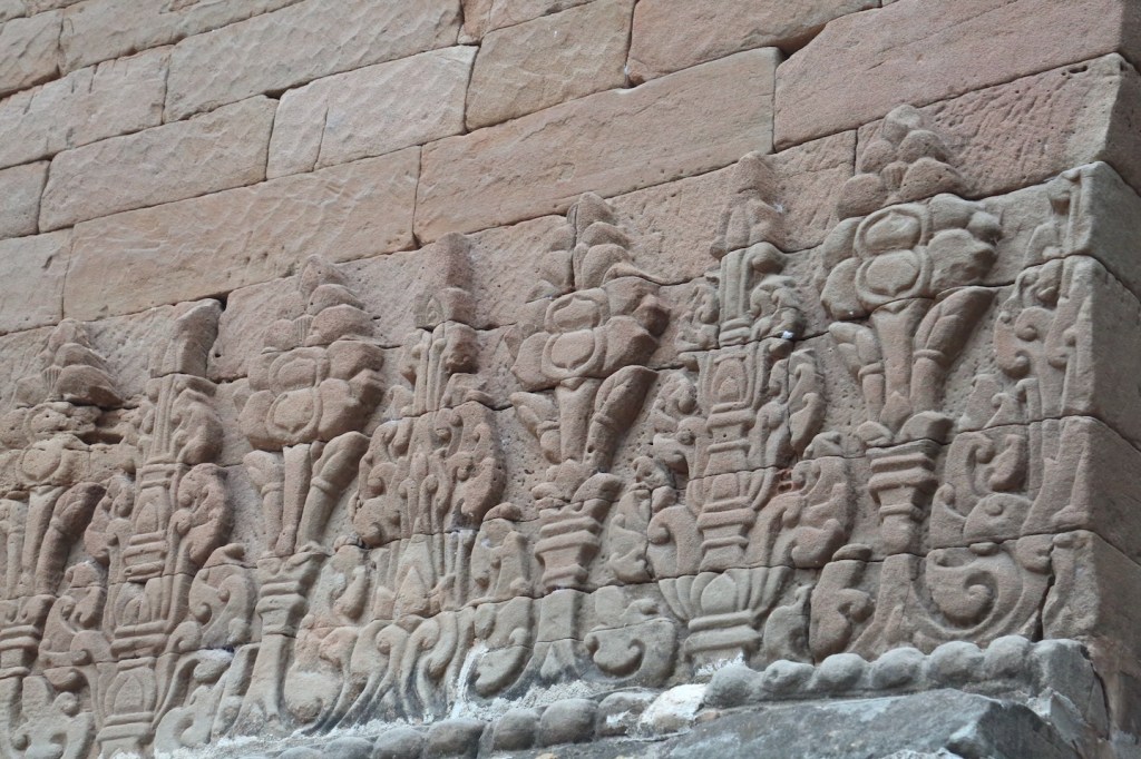 ကျောက်ဂူဥမင်က ကျောက်ဆစ်လက်ရာတွေဟာ အနုစိတ်လက်ရာမြောက်တဲ့အတွက် ထင်ရှားပါ တယ်။ ပုဂံဂူဘုရားတွေထဲကို ဝင်ခွင့်ပိတ်ထားပေမယ့် ကျောက်ဂူဥမင်ကတော့ အစောင့်လုပ်သူက ဧည့်သည်လာရင်ဖွင့်ပေးတယ်။ ကျွန်တော်ကတော့ အရင်ရောက်ဖူးပြီးသားဖြစ်လို့ အထဲမှာ ကြာ ကြာမနေပါဘူး။ ကျောက်ဂူဥမင်ရှေ့ တမာပင်ရိပ်က ကွပ်ပျစ်မှာနား၊ အေးငြိမ်းတဲ့ အရသာကို ခံစား မိတယ်။