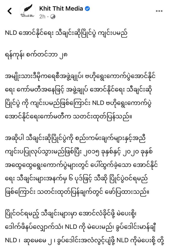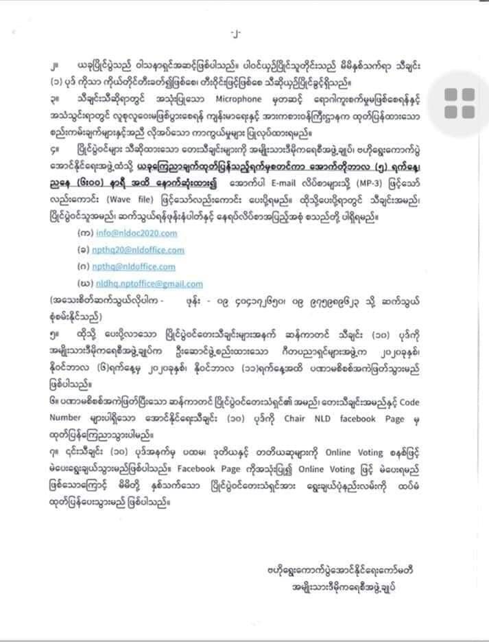 “ NLD အောင်နိုင်ရေး သီချင်းဆိုပြိုင်ပွဲကျင်းပမည် ” ( ခေတ်သစ်မီဒီယာသတင်း) ပုံ ၁ မှ ၄ အထိ
