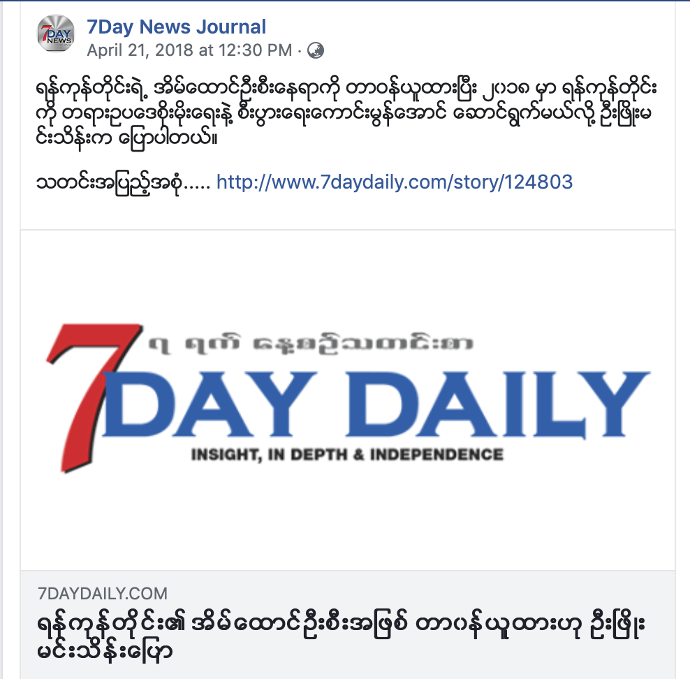 ၁။ ရန်ကုန်တိုင်း၏ အိမ်ထောင်ဦးစီးနေရာတွင် တာဝန်ယူထားပြီး ၂၀၁၈ မှာ ရန်ကုန်တိုင်းကို တရားဥပဒေစိုးမိုးရေး နဲ့ စီးပွားရေးကောင်းအောင်ဆောင်ရွက်မယ်။