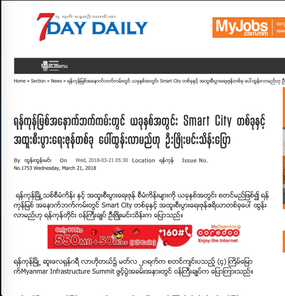 ၄။ ရန်ကုန်မြစ်အနောက်ဘက်ကမ်းတွင် ယခုနှစ်အတွင်း Smart City တစ်ခုနှစ် စီးပွားရေး ဇုန် တစ်ခု ပေါ်ထွန်းလာမည်။