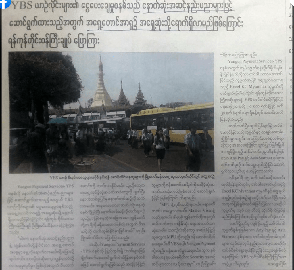၈။ YBS ယာဉ်လိုင်းများ၏ ငွေပေးချေမှုစနစ် အရှေ့တောင်အာရှ၌ အရှေ့ဆုံးသို့ရောက်လာမည်။