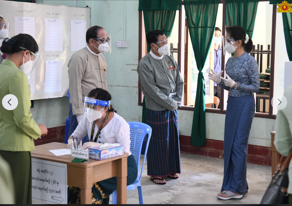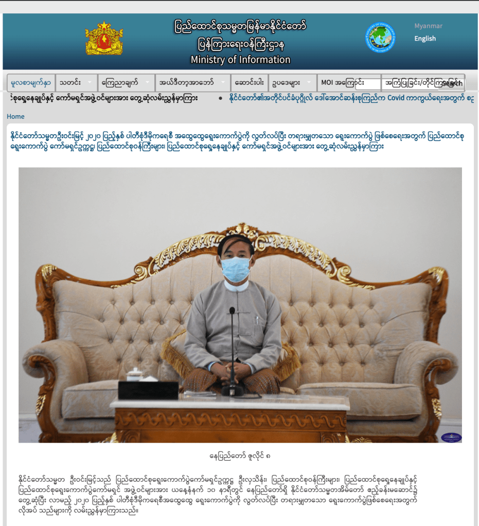 ဒါပေမယ့် လက်တွေ့မှာ တကယ်ဖြစ်သလား။ ရွေးကော်က လွတ်လပ်တဲ့ ကော်မရှင် ဆိုရင် သမ္မတ ဦးဝင်းမြင့်က ရွေးကောက်ပွဲကော်မရှင်ဥက္ကဋ္ဌကို လွတ်လပ်ပြီး တရားမ ျှတ တဲ့ ရွေးကောက်ပွဲဖြစ်ဖို့အတွက် လမ်းညွှန်မှာ ကြားဖို့ လိုသလား၊ လုပ်လို့ရသလား။ ပြည်ထောင်စု ရွေးကောက်ပွဲကော်မရှင်ဘာတွေလုပ်ရမလဲဆိုတာ ဖွဲ့စည်းပုံ အခြေခံဥပဒေ ပုဒ်မ ၃၉ ၉ နဲ့ ၄၀၂ မှာ အတိအကျပြဋ္ဌာန်းပြီးသားပဲ။ အဲဒီအတိုင်းမလုပ်ရင် ပုဒ်မ ၄၀၀ အရ စွပ်စွဲပြစ်တင်ပြီး အရေး ယူဖို့ပဲရှိတယ်။ အခုတော့ သမ္မတက ကော်မရှင်ကို ခေါ်ပြီး တွေ့ဆုံလမ်းညွှန်မှာကြားတဲ့ အပြင် သတင်းတောင်ထုတ်ပြန်ခဲ့သေးတယ်။ ( ပုံ ၁ )