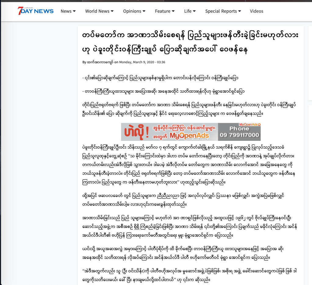 • တပ်မတော်က အာဏာသိမ်းဖို့ အတွက် ပြည်သူတွေက ဖန်တီးနေတာ မဟုတ်ဘူး လား လို့ ပြောခဲ့တယ်။ ( ပုံ ၃)