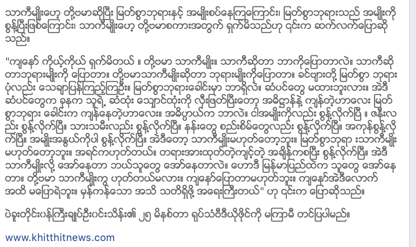 • သာကီမျိုးဟေ့ ဒို့ဗမာ ဆိုတဲ့စကားအတွက် ရှက်မိတဲ့အကြောင်းလည်း ရှင်းပြဖူးတယ်။ ( ပုံ ၅)