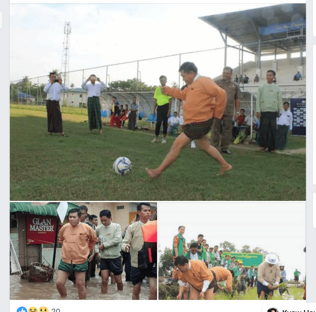 • အားကစား၊ စိုက်ပျိုးရေး အောက်ခြေအထိ ဆင်းလုပ်တယ်။ ရေဘေးကယ်ဆယ်ရေး မှာ သက်ကယ်အင်္ကျီလာပေးတာမယူဘဲ ဒူးလောက်အထိ နက်တဲ့ရေပြင်ထဲမှာ ဖြတ်သွားခဲ့ တယ်။ ( ပုံ ၆)