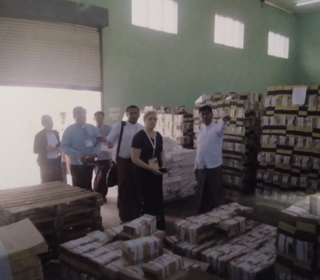 မဲလက်မှတ်ပုံနှိပ်မှုကို အနီးကပ်စောင့်ကြည့်တဲ့အဖွဲ့တွေထဲမှာ အမေရိကန်သမ္မတဟောင်း ကာတာ ရဲ့ အဖွဲ့က အင်အားအကောင်းဆုံးပဲ။ ကျွန်တော်ကိုယ်တိုင်လည်း ကာတာစင်တာ အဖွဲ့ တာဝန်ခံ တွေကို ရှင်းပြခဲ့ရတယ်။ ( ပုံ ၁ မှ ၄ အထိ )