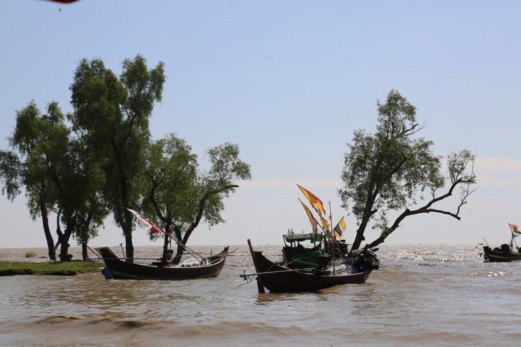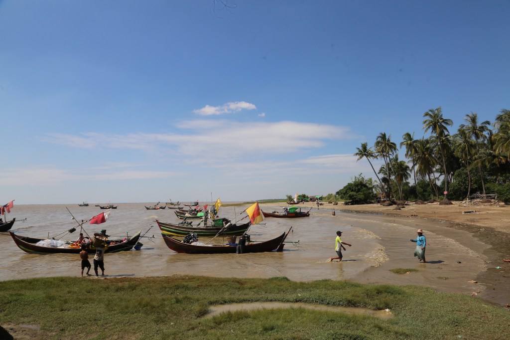 ကျွန်တော်ရောက်သွားတဲ့အချိန်မှာ ငါးဖမ်းလှေတွေပြန်လာကြပြီ။ ရောင်စုံအလံတလူလူနဲ့ ငါးဖမ်းလှေတွေ၊ တစ်ချို့က ကမ်းနဲ့ဝေးဝေး၊ တစ်ချို့က ကမ်းခြေမှာ ငါးတောင်းတွေကို ချ လို့၊