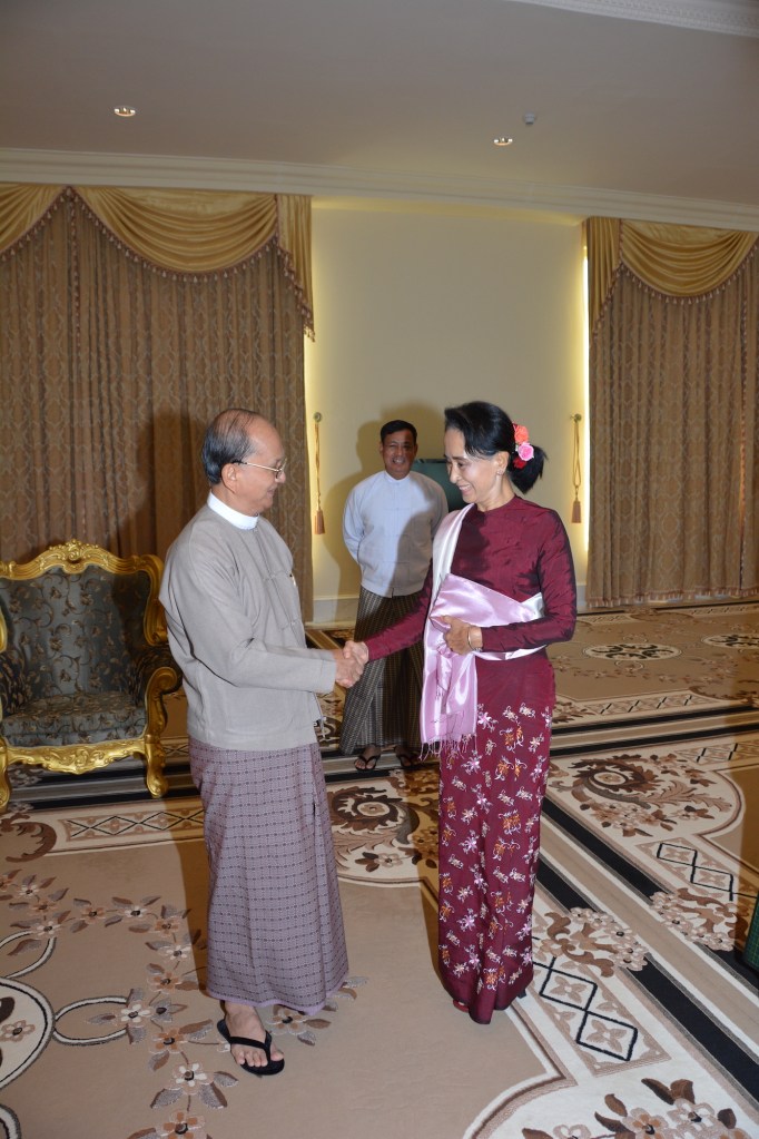 ဦးသိန်းစိန်က မလေးရှား နိုင်ငံမှာ ကျင်းပမယ့် အာဆီယံထိပ်သီးအစည်းအဝေးကို တက်ဖို့အတွက် နိုဝင်ဘာ ၂၀ ရက်နေ့မှာ နေပြည်တော်ကနေ ထွက်ခွာရမယ်။ ဒေါ်အောင်ဆန်းစုကြည်က တစ်ပတ် အတွင်း တွေ့ဖို့တောင်းဆိုထားတော့ သူတောင်းဆိုလို့ လုပ်ရတယ်ဆိုတဲ့ အမြင်မရှိ စေချင်ဘူးဆိုရင် အာဆီယံ အစည်းအဝေးက ပြန်လာမှပဲတွေ့ဖို့ စီစဉ်နိုင်မှာဖြစ်ပါတယ်။