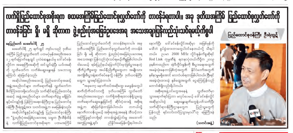 အဲဒီပြန်ကြားချက်ကို အစိုးရအဖွဲ့က စာနဲ့ပြန်ကြားရင် လွှတ်တော်အပေါ် တာဝန်ခံမှုရှိတယ်ဆို တဲ့ သဘောသက်ရောက်နိုင်တဲ့အတွက် ကျွန်တော်ကပဲ မီဒီယာတွေကတဆင့် ပြောကြား ဖို့တာဝန်ပေး ခဲ့ပါတယ်။ အဲဒီ လို တုန့်ပြန်ပြောကြားမှုနဲ့ပတ်သက်ပြီး ဝေဖန်မှုအမျိုးမျိုး လည်းပေါ်ထွက်ခဲ့တယ်။ ကျွန်တော်တို့ ဘက် ကတော့ လိုအပ်ရင် ဖွဲ့စည်းပုံ အခြေခံ ဥပဒေဆိုင်ရာခုံရုံးရဲ့ ဆုံးဖြတ်ချက်ကို နာခံမယ်ဆိုတဲ့ ရပ်တည် ချက်ကိုပဲ ဆက်လက် ဆွဲကိုင်ထားခဲ့တယ်။ ( ပုံ ၂)