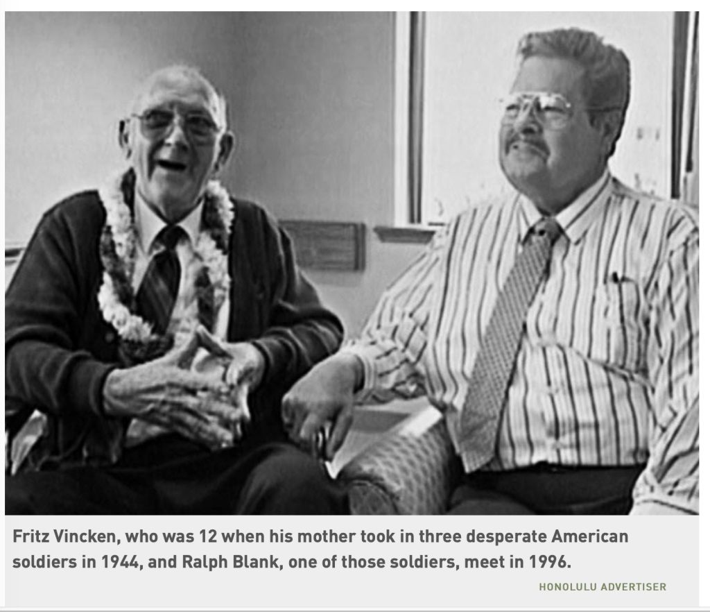 ၁၉ ၉ ၅ ခုနှစ်မှာတော့ အမေရိကန် ရုပ်သံအစီအစဉ်တစ်ခုက အာဒင်းနိစ်သစ်တောထဲက ခရစ်စမတ်ညအကြောင်းကို ထုတ်လွှင့်ခဲ့သည်။ အဲဒီအစီအစဉ်ကို အကြောင်းပြုပြီး ဖရစ်ဇ် နှင့် အမေရိကန်စစ်သားတစ်ဦးဖြစ်သူ ဖရန့်ဘင့်ခ် တို့ ပြန်ဆုံကြသည်။ ဖရန့်က ထိုခရစ်စမတ် ညလေးအကြောင်းကို အကြိမ်များစွာပြောခဲ့၊ ရေးခဲ့ဖူးသည်။ သူ့ဆီမှာ ထိုအချိန်က သူတို့ သုံးခဲ့ သည့် မြေပုံနှင့် ဂျာမန်စစ်သားတွေပေးလိုက်သည့် သံလိုက်အိမ်မြှောင်ကို အမှတ်တရသိမ်းထားဆဲ ဖြစ်သည်။ ဖရန့်က “ မင်းအမေက ငါတို့ အသက်ကို ကယ်ခဲ့တာ” ဟု ရိုးရိုးလေးပဲ ပြောပြခဲ့သည်။ ဖရစ်ဇ်က နောက်ထပ်အမေရိကန်စစ်သည်သားတစ်ယောက်ကို ရှာတွေ့ခဲ့သော်လည်း ကျန်တဲ့ အမေရိကန်စစ်သည်တစ်ဦးနဲ့ ဂျာမန်စစ်သည်တွေကိုတော့ ရှာဖွေလို့မရတော့။