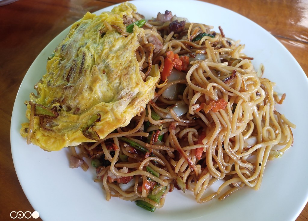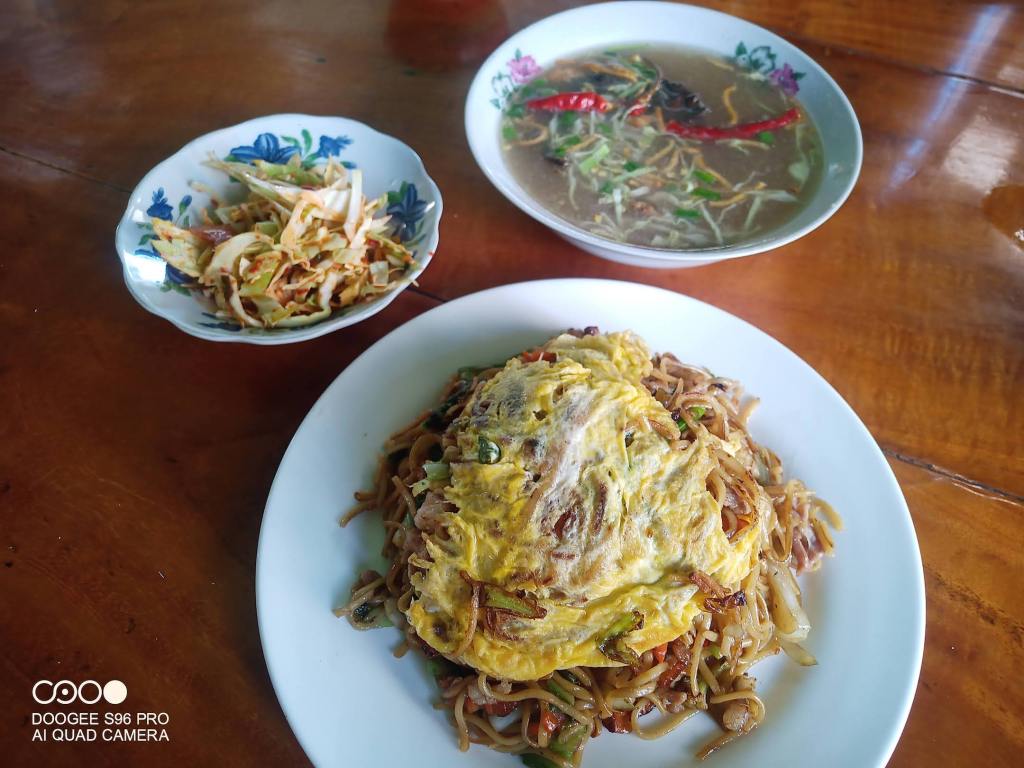 ခဏနေတော့ ခေါက်ဆွဲကြော်ရောက်လာတယ်။ ခေါက်ဆွဲပေါ်မှာ ကြက်ဥကြော်တင်ထားတယ်။ ဂေါ်ဖီ ငရုတ်ဆီနဲ့လုပ်ထားတဲ့ အချဉ်တစ်ပွဲ၊( ဒီအချဉ်မျိုးကိုတော့ မကြိုက်လှဘူး) နောက် ကြက်ပြုတ်ရည်၊ မုန့်ကြွပ်၊ ဂေါ်ဖီထုပ်၊ ကြက်သွန်မိတ်၊ ငြုပ်သီးတောင့် ရှည် တွေ နဲ့ ဆာဒါး ဟင်းချို တစ်ခွက်။ တကယ့်ပုံမှန် တရုတ်ခေါက်ဆွဲဆိုင်ရဲ့ ခေါက်ဆွဲကြော် အခင်းအကျင်းပဲ။