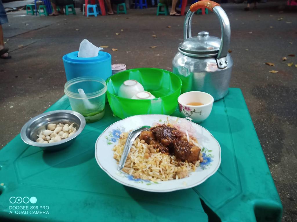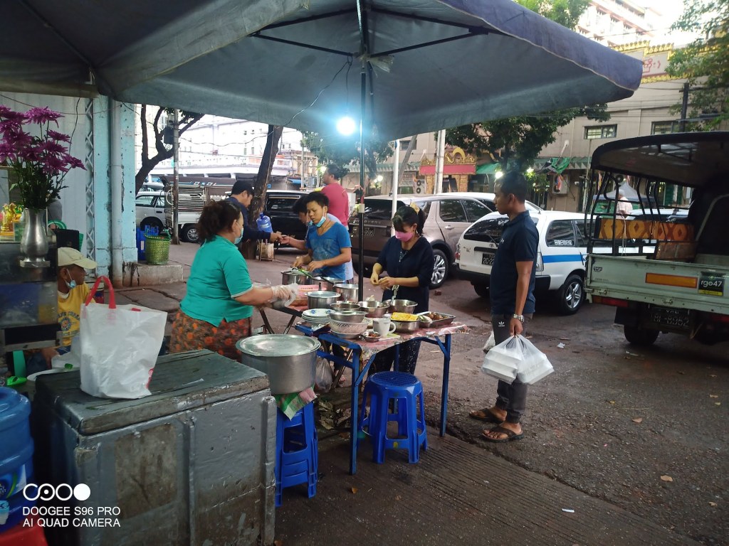 AkhayarLifestyle ဖေ့စ်ဘွတ်စာမျက်နှာက ညွှန်းလို့ ကုန်ဈေးတန်းလမ်းနဲ့ မဟာဗန္ဓုလ လမ်း ထောင့်က ထမင်းကြော်ဆိုင် ကို ရောက်ခဲ့တယ်။ ဆိုင်က စားတဲ့သူများသလို ပါဆယ်ဝယ်တဲ့သူလည်း များတယ်။