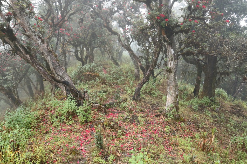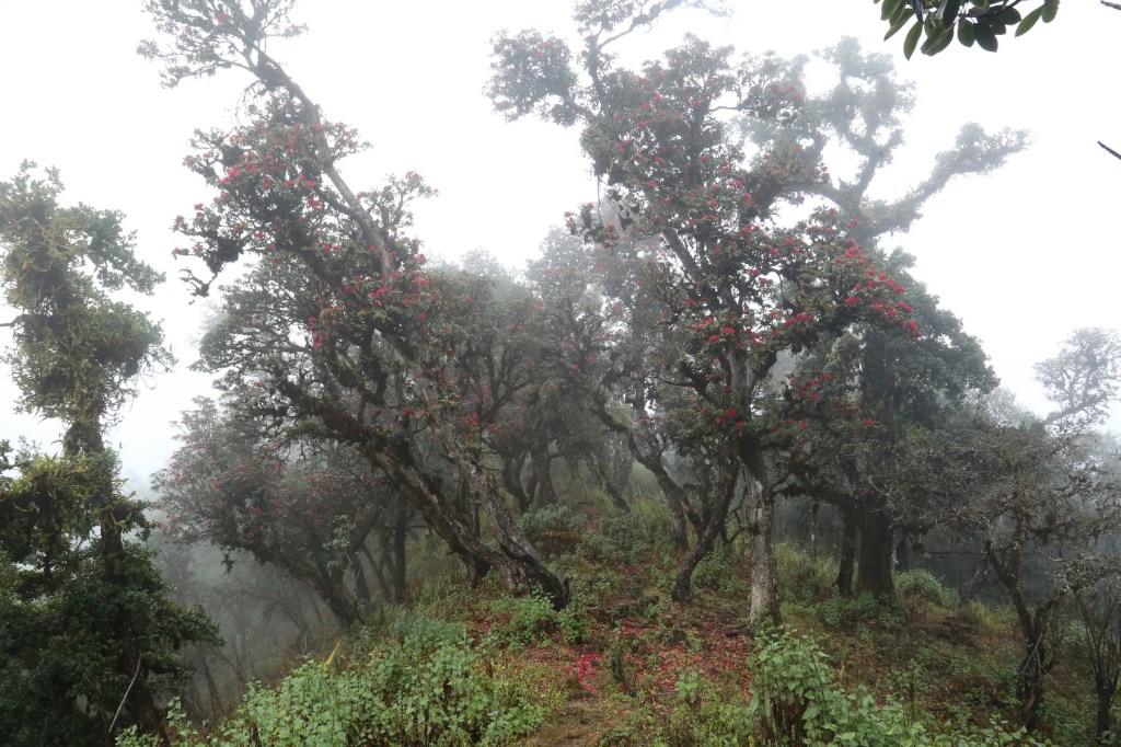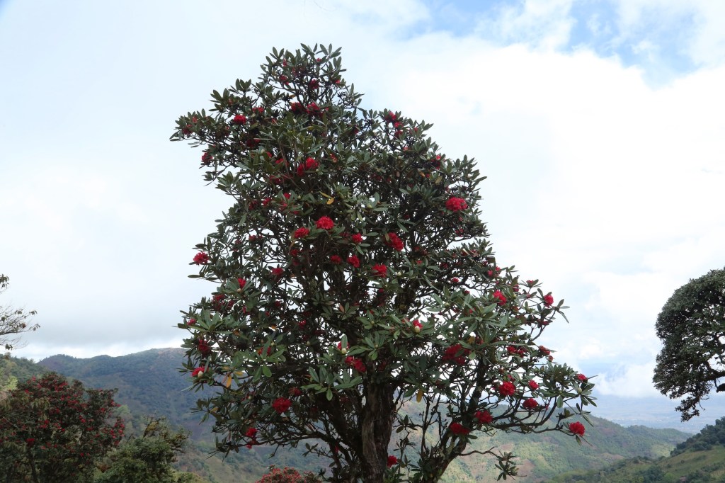 ဒီတောင်ကြောပေါ်ရောက်တာနဲ့ တောင်ဇလပ်ပင်တွေကို စတွေ့ရပြီ။ တောင်ပေါ်မှာ တောင်ဇလပ် ပန်း နီနီတွေ ပင်လုံးကျွတ်ပွင့်နေတယ်။ အပင်အောက်မြေပြင်မှာလည်း ကြွေကျ နေတဲ့ တောင်ဇလပ် ပန်းနီနီတွေ နဲ့ ဖုံးလွှမ်းနေတယ်။ အထပ်ထပ် လွှမ်းနေတဲ့ ရေညှိတွေ အောက်က ကြွက်သားတွေ လို ဖုထစ်နေတဲ့ သစ်ခေါက်တွေ ၊ လေပြင်းဒဏ်ကြားကနေ ထိုးထွက် ထောင်မတ်နေတဲ့ အကိုင်းအခက် တွေနဲ့ ပြင်းထန်တဲ့ရာသီဥတုဒဏ်၊ လေပြင်းဒဏ် ကို ကြံ့ကြံ့ခံပြီး ရှင်သန်နိုင်၊ ပန်းတွေဝေပြီး တောင်တန်းကို အလှဆင်နိုင်တာ တောင်ဇလပ်ပင်တွေရဲ့ ထူးခြားတဲ့ အရည်အသွေးပဲ။