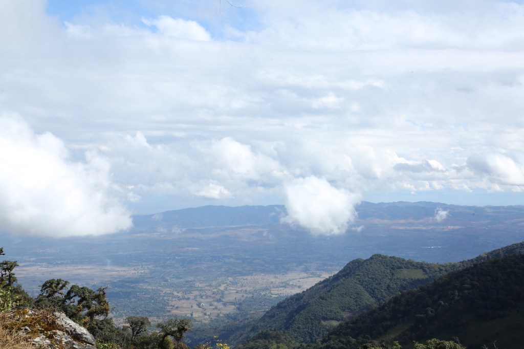 တောင်ထိပ်မှာ အပူချိန်က ၅ ဒီဂရီ ဆယ်လ်စီးရပ် ( 5 ံC) ပဲရှိပြီး လေပြင်းတိုက်နေတဲ့အတွက် ကြာကြာမနေနိုင်ဘူး။ မိနစ်နှစ်ဆယ်လောက်ပဲနေပြီး လေကွယ်တဲ့ တောင်စောင်းမှာ နေ့လယ်စာ စားပြီး ပြန်ဆင်းခဲ့တယ်။ အပြန်လမ်းမှာတော့ မြင်ကွင်းကောင်းလာလို့ ပတ်ဝန်းကျင် ရှုခင်းတွေကို မြင်ခဲ့ရတယ်။ ဓာတ်ပုံရိုက်နိုင်ခဲ့တယ်။