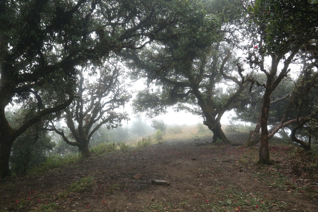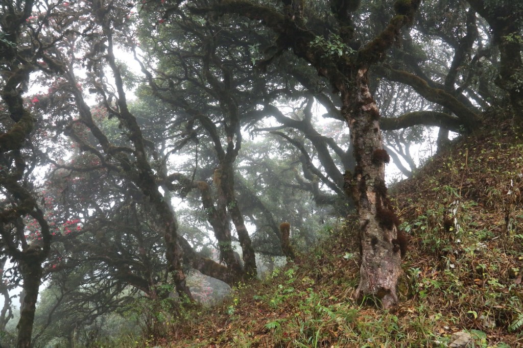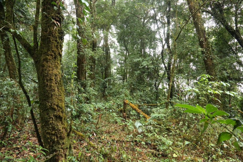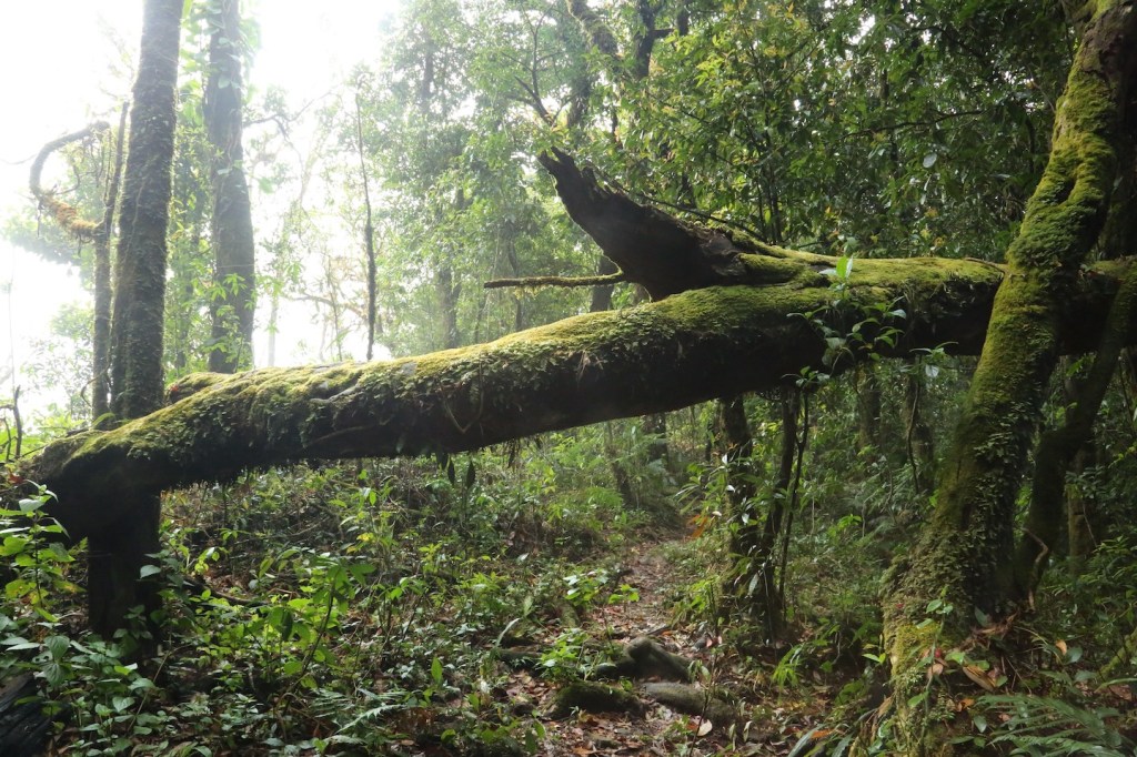 တောင်ကြောပေါ်က တစ်ချို့နေရာတွေမှာတော့ အောက်ခံမြေသားက ကျောက်ဖြစ်နေတဲ့ အတွက် သစ်ပင်ကြီးတွေမရှိဘူး။ ဒါပေမယ့် အချိန်အတော်များများကတော့ နေပြောက်မထိုးတဲ့ သစ်ပင် ကြီးတွေအောက်က သွားရတာဖြစ်ပါတယ်။ ဒီတောင်ကြောမှာ ပရဆေးပင်တွေလည်း ပေါက် တယ်။ လမ်းပြတွေက ရှင်းပြပေမယ့် အပင်နာမည် အများစုက ပလောင်ဘာသာနဲ့ ဖြစ်နေ တဲ့ အတွက် အမျိုးအစား သေသေချာချာမသိခဲ့ရဘူး။ မြန်မာဘာသာနဲ့ ခေါ်တဲ့ ကျောက်ချင်း ( ဂျင်း)၊ ကရဝေး၊ ကွမ်းအရိုင်း လောက်ပဲ သိရတယ်။ သစ်ကိုင်းတွေမှာ ပေါက်နေတဲ့ ရေညှိပင်တွေကြားက တွဲလောင်းကျနေတဲ့ ဆံချည်မ ျှင်လို အနက်ရောင်နွယ်တွေကလည်း ဆေးဖက်ဝင်တယ်လို့ ပြော တယ်။